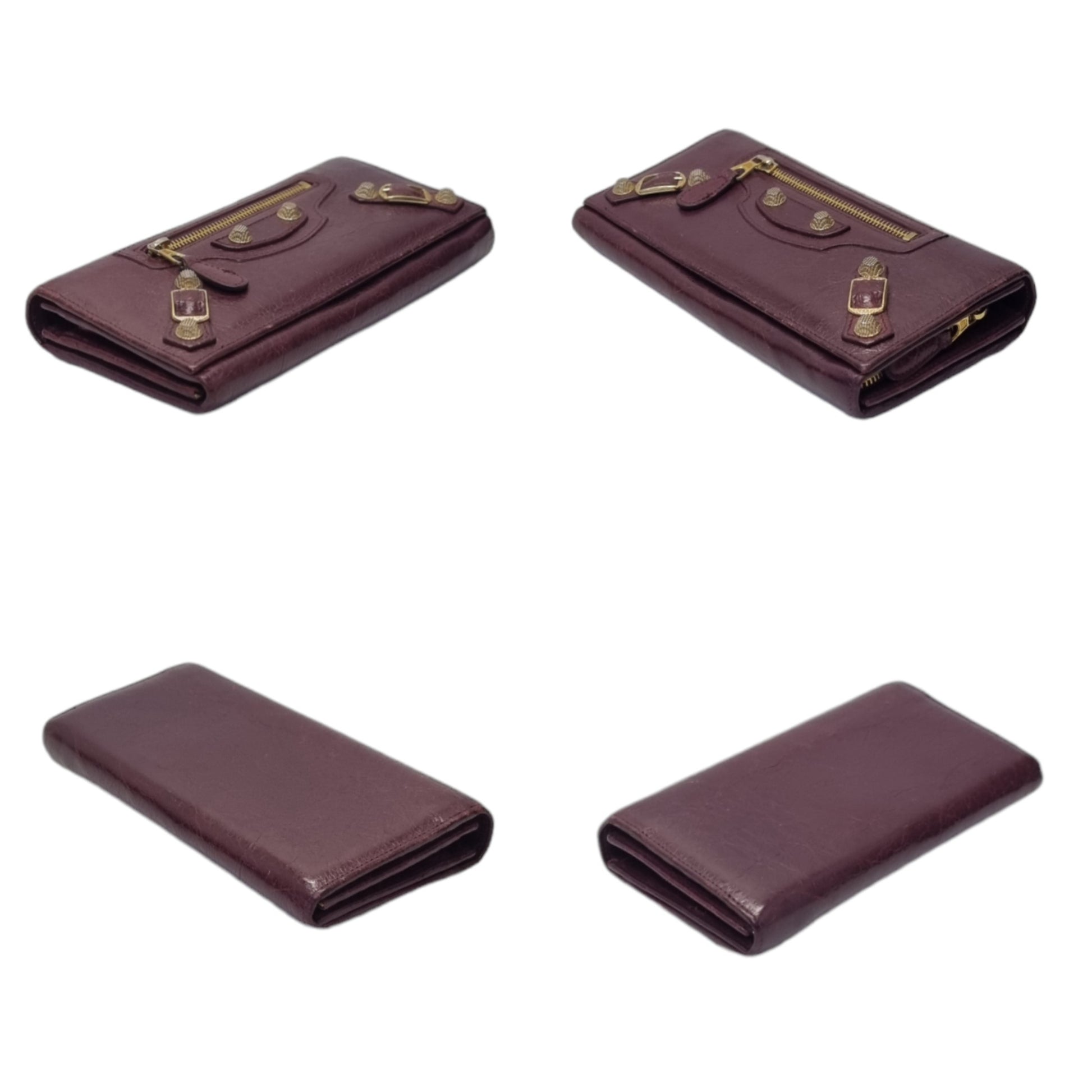 Balenciaga Bifold Continental Leather Long Wallet (Burgundy)