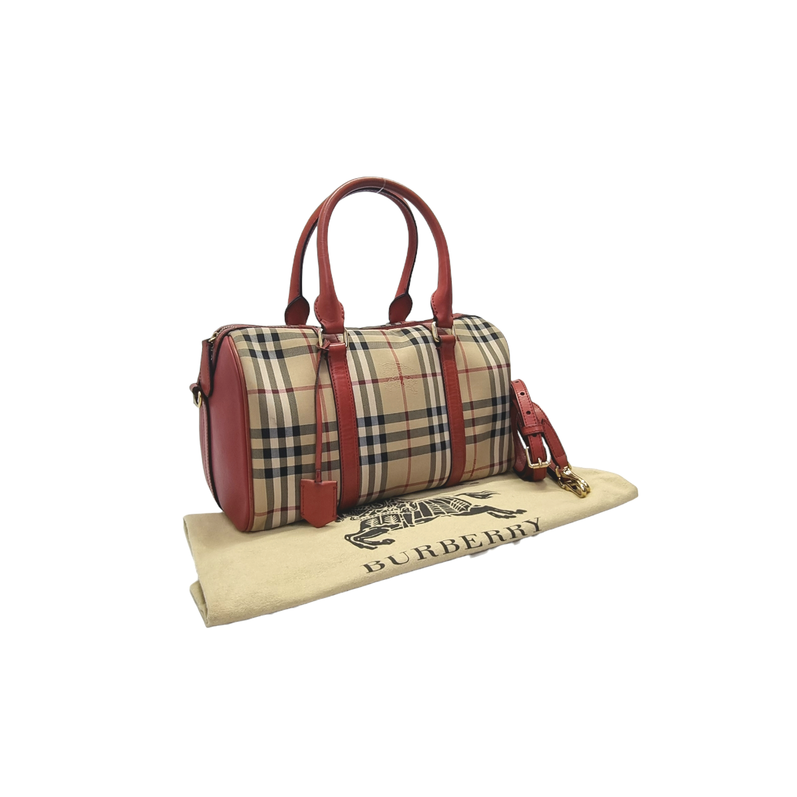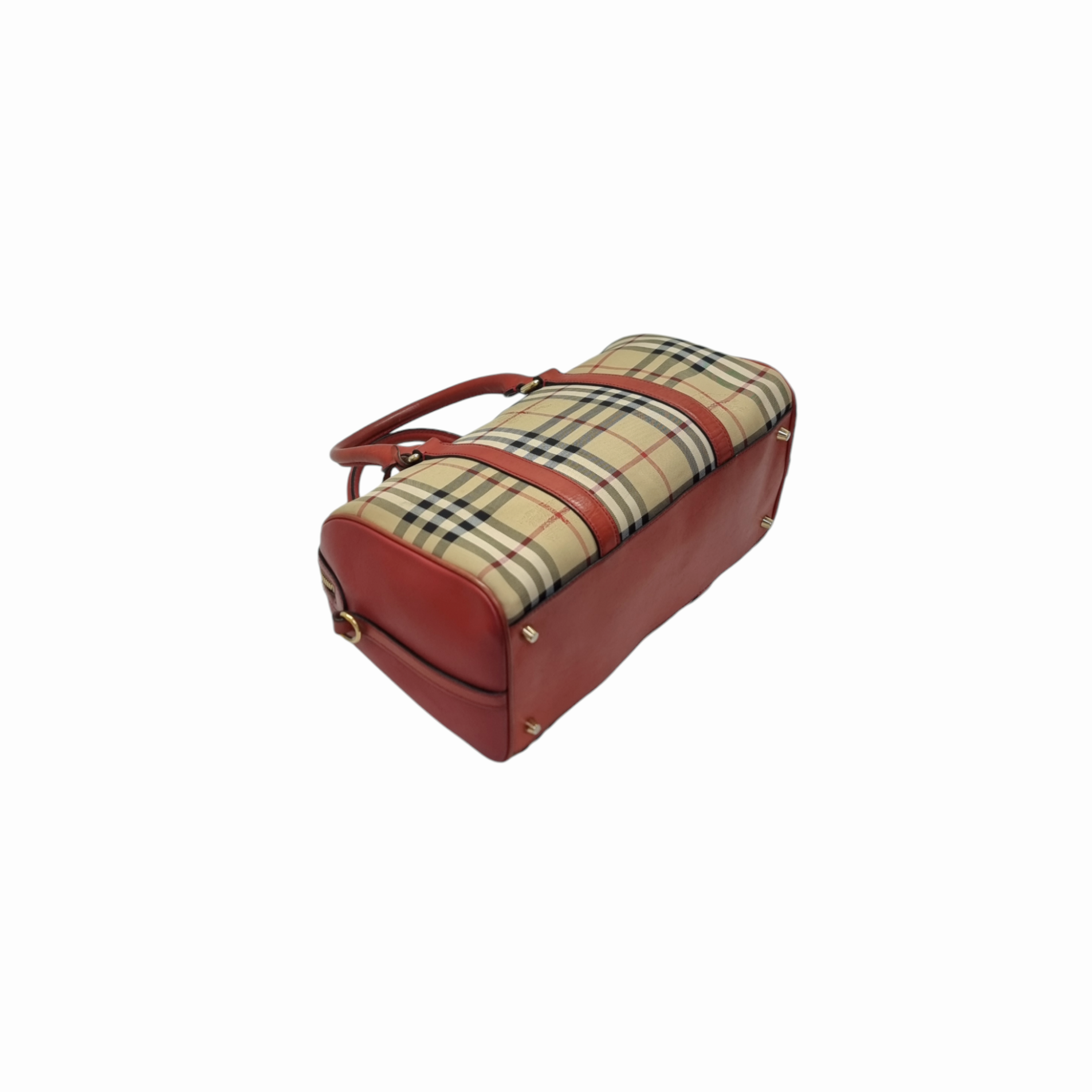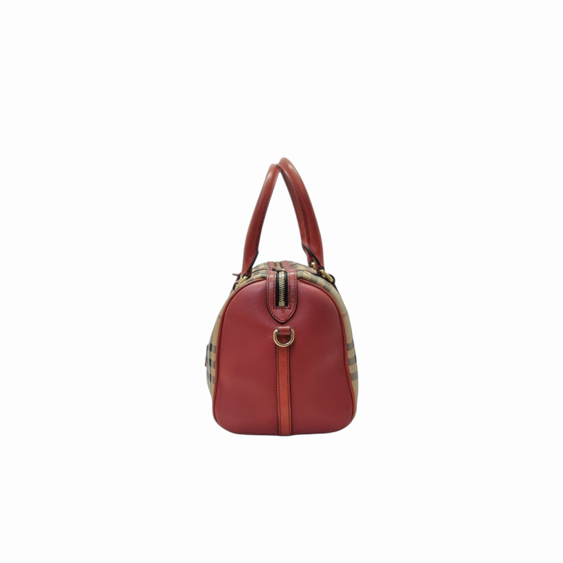 Burberry Alchester Medium Horseferry Check Canvas Boston Bag Ghw (Red)