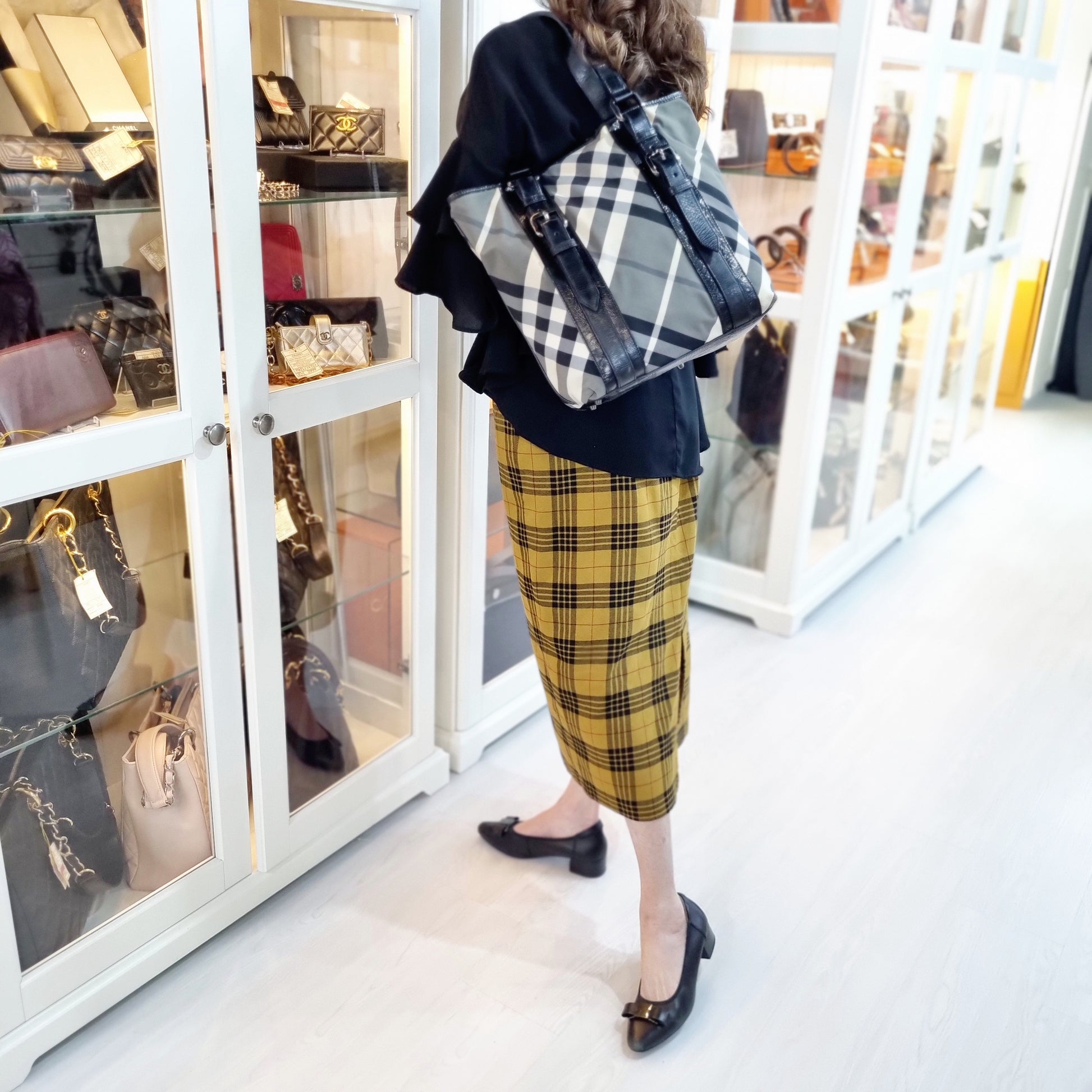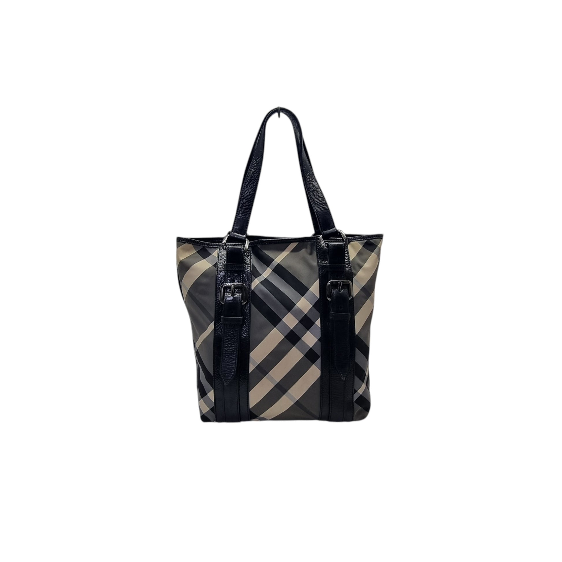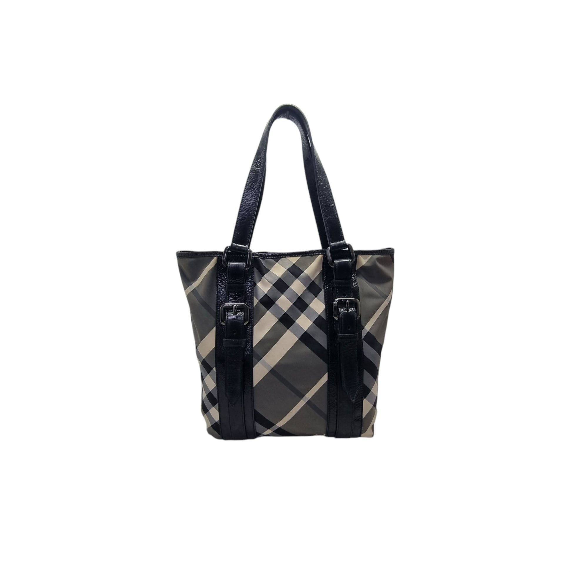 Burberry Beat Check Victoria Nylon Leather Shoulder Bag Shw (Black)