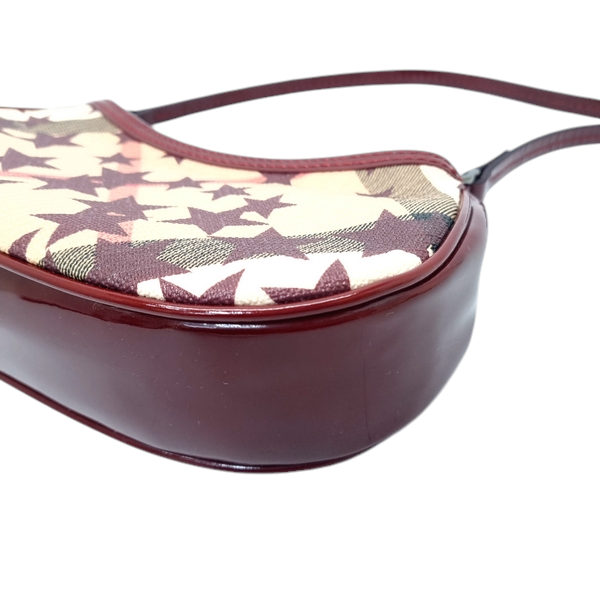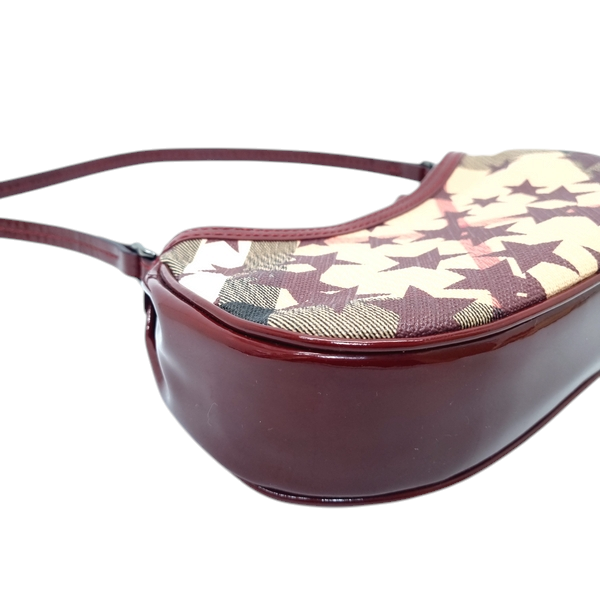 Burberry Pochette Nova Stars Mini Canvas Patent Leather Gunmetal Hw (Berry Red)