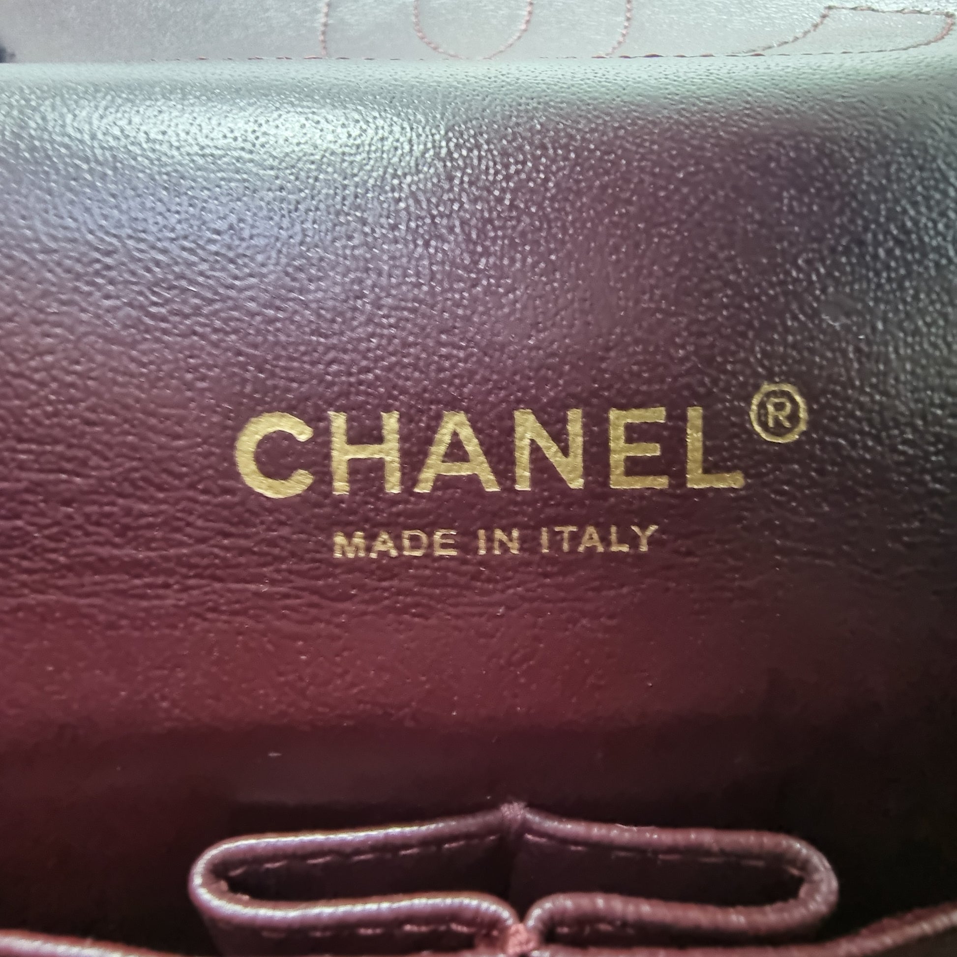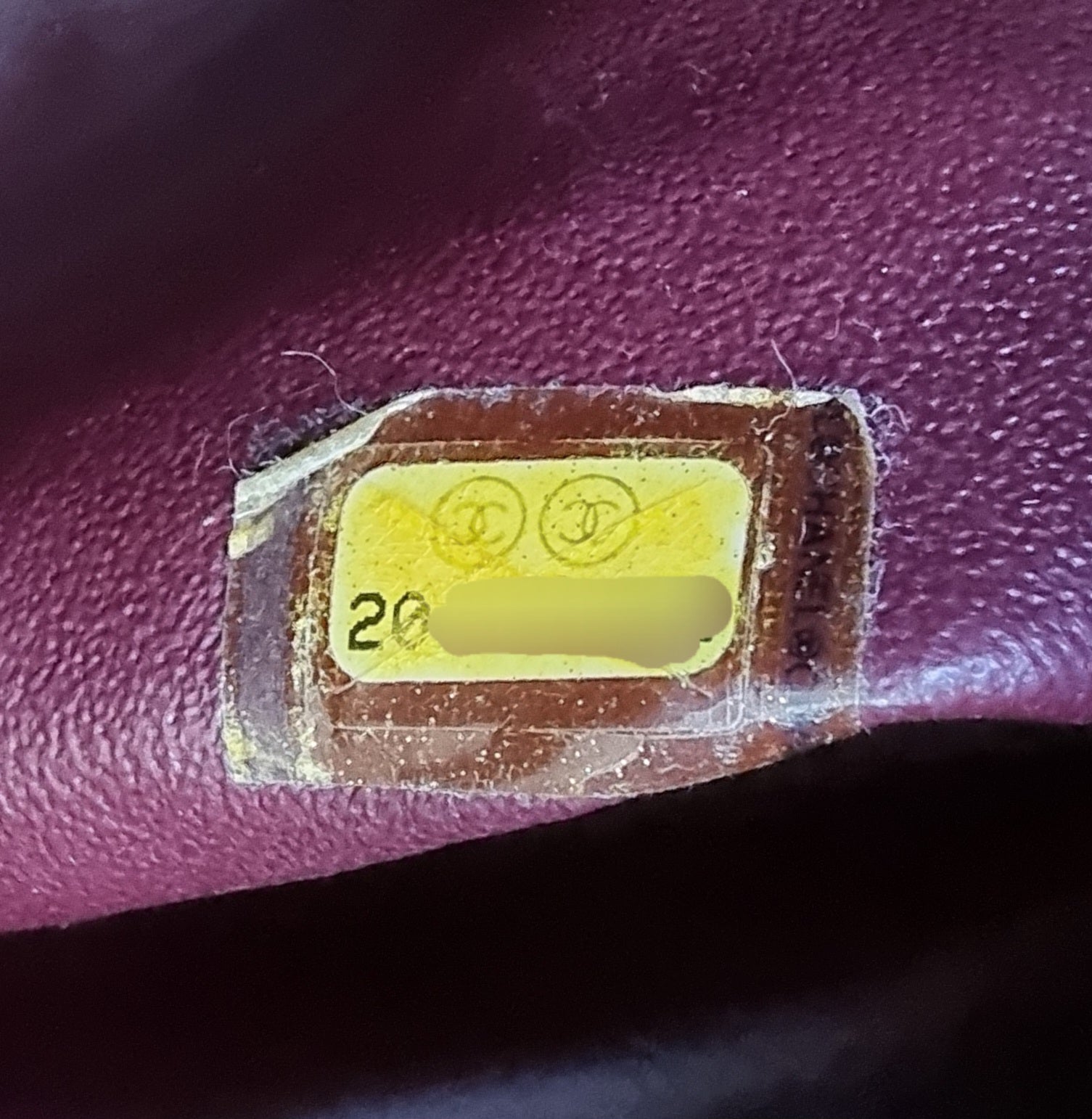 Exterior : The leather slightly scratches and rubbing at the bottom corners. The hardware has hairline scratches. Overall in excellent condition with flap top with turn-lock closure, 1 back flat pocket, double chain and leather entwined handles.