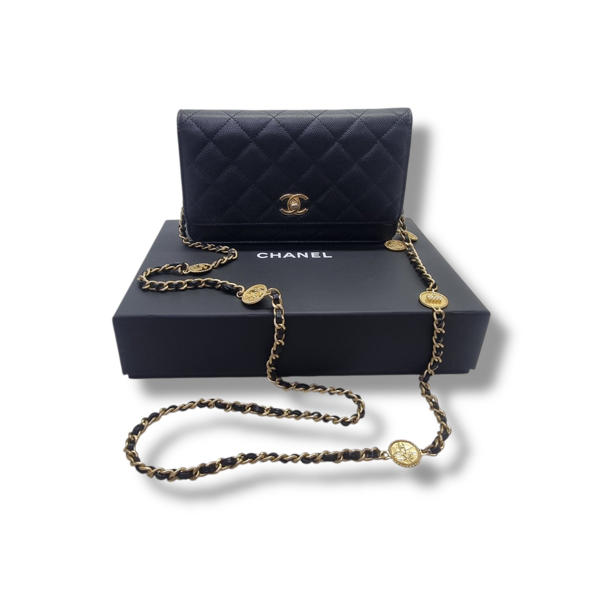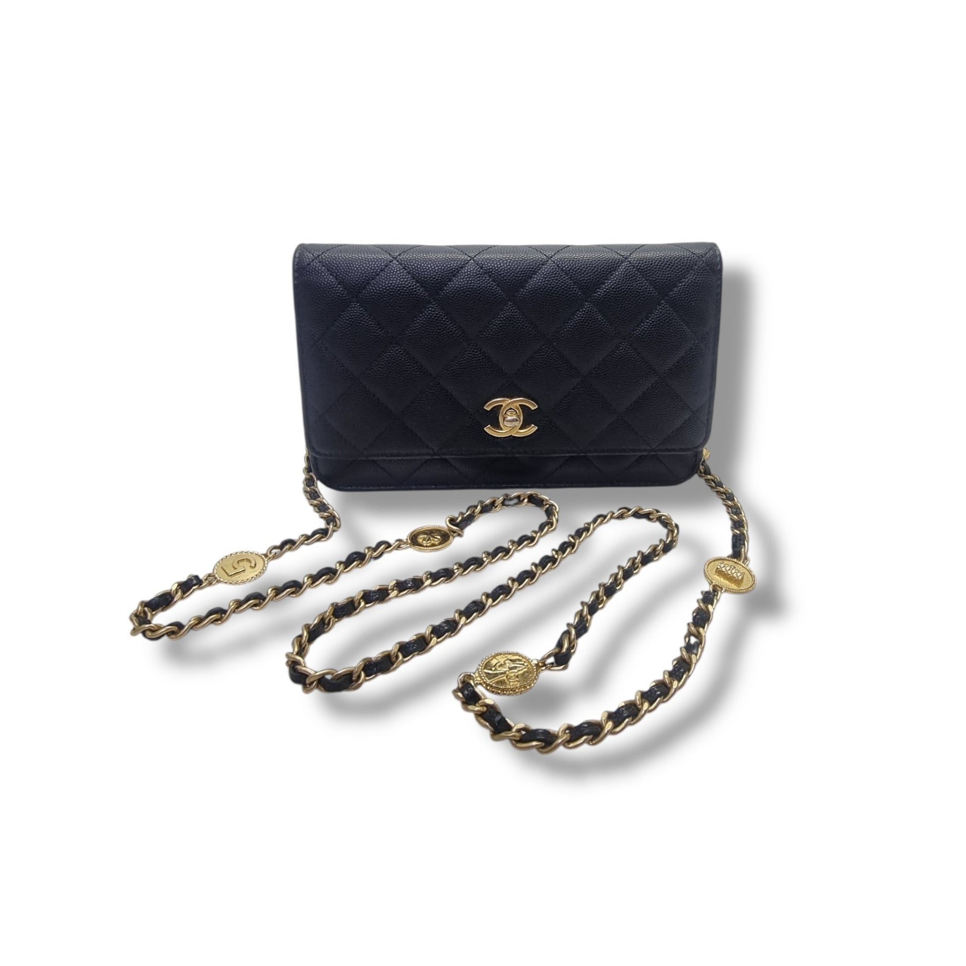 Chanel Wallet On Chain Gold Coin Twist Your Buttons Caviar Ghw (Black)