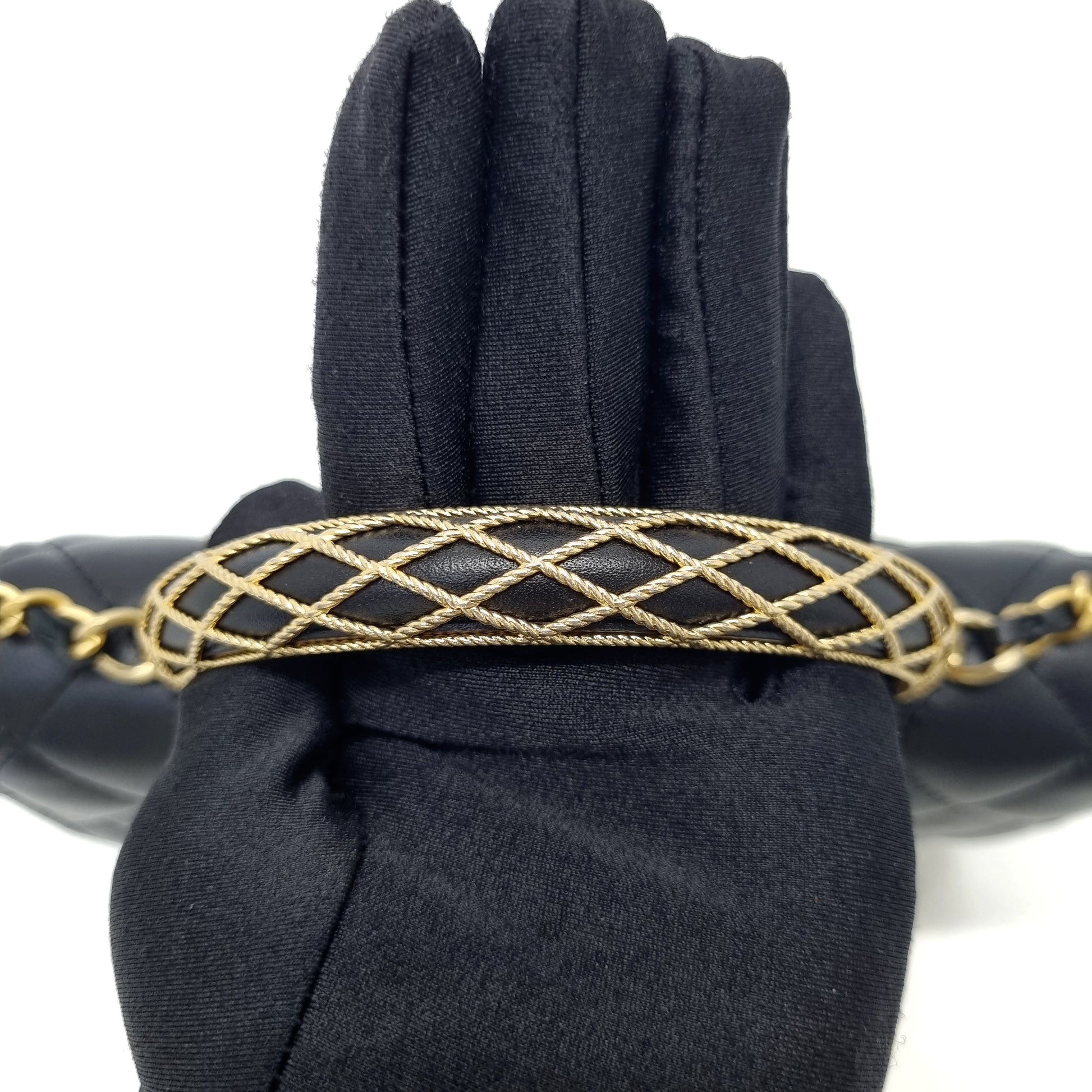 Exterior : New with flap turnlock closure, top handle, back 1 slip pocket, chain interwoven strap