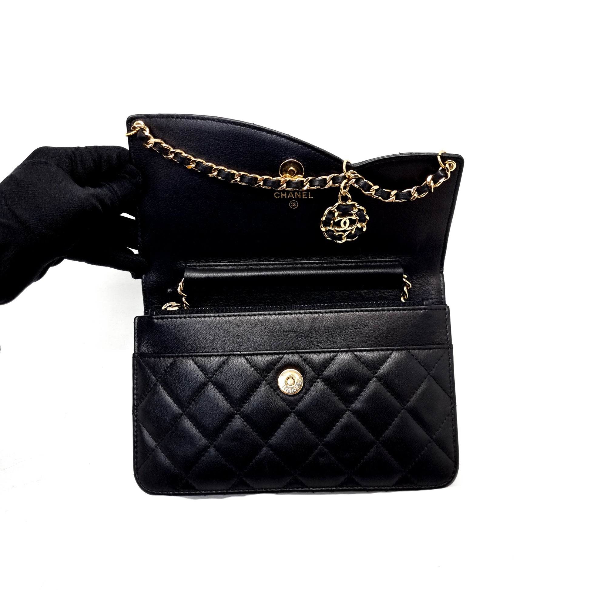 Chanel WOC CC Charm Lambskin Ghw (Black)