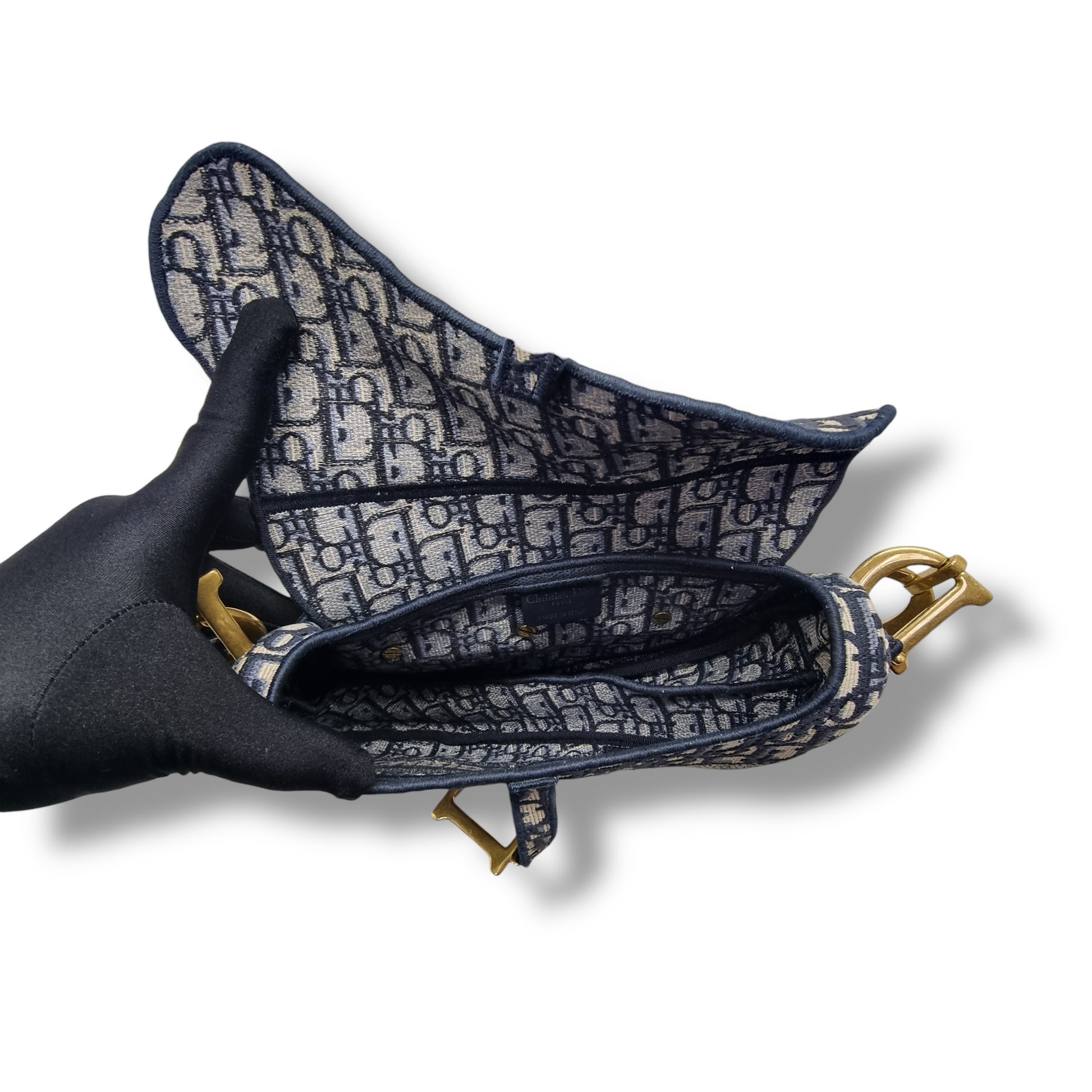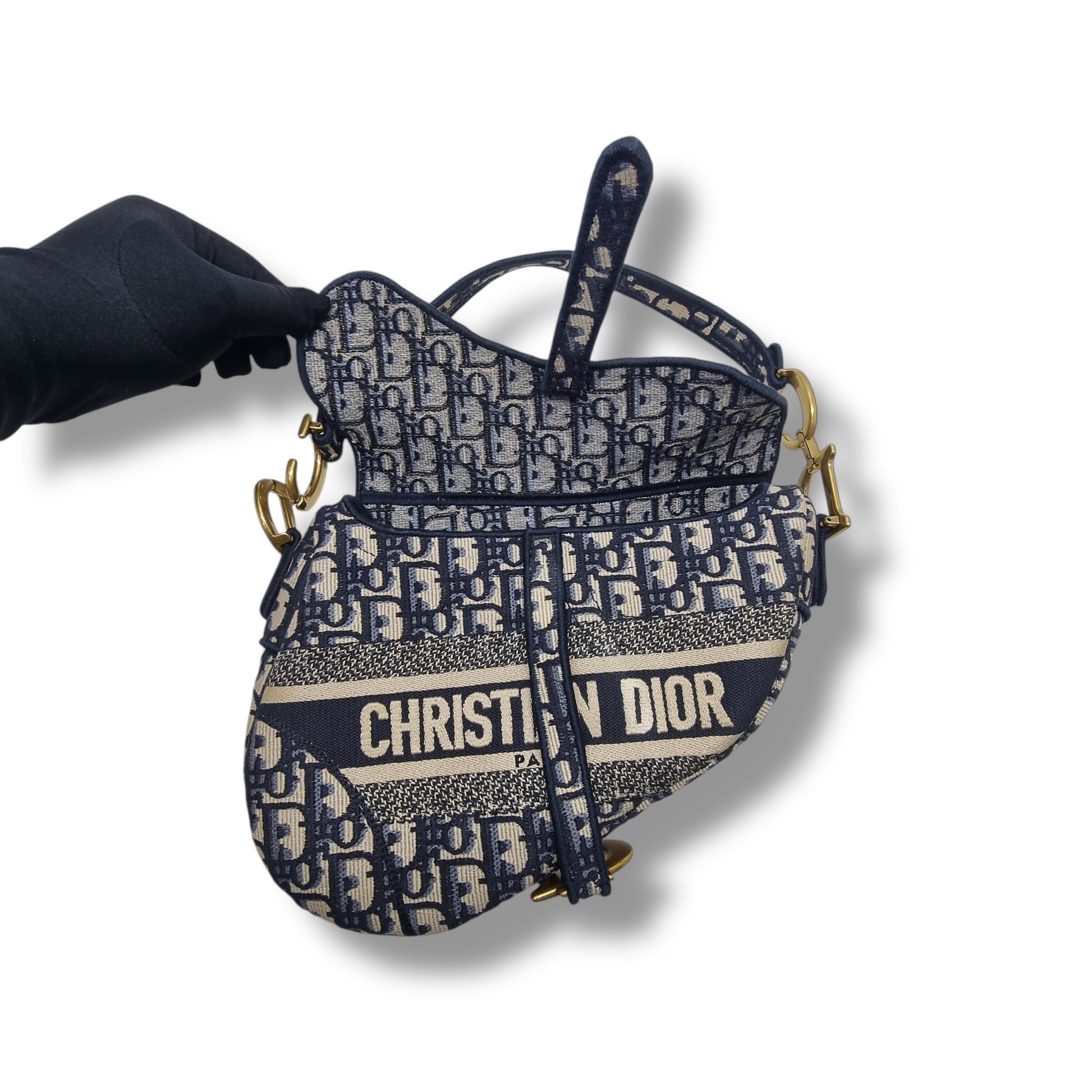 Christian Dior Saddle Dior Embroidered Oblique Canvas Medium Ghw (Jacquard Blue)