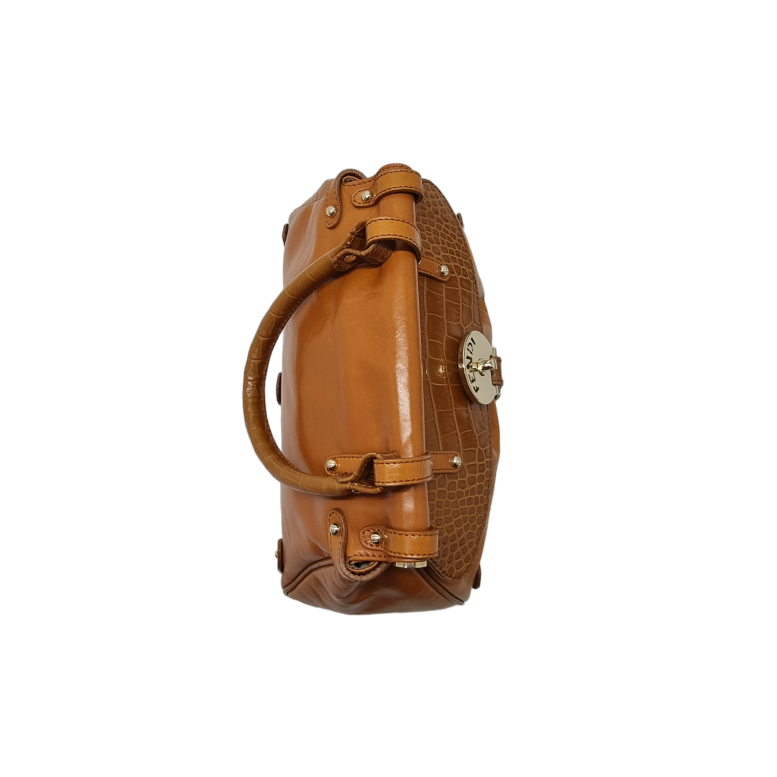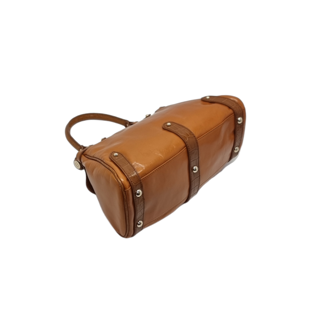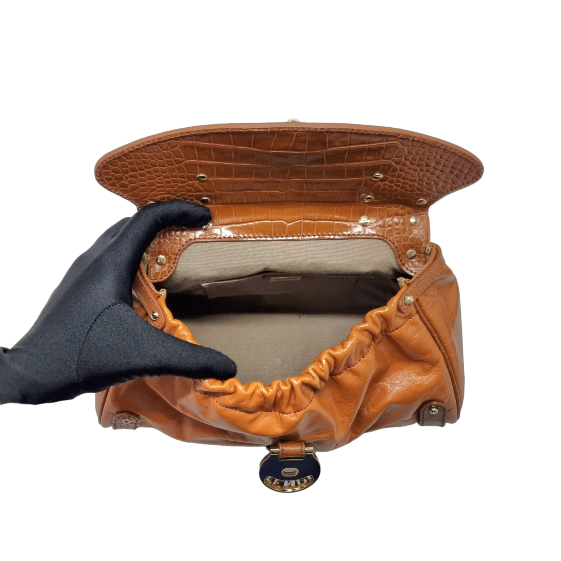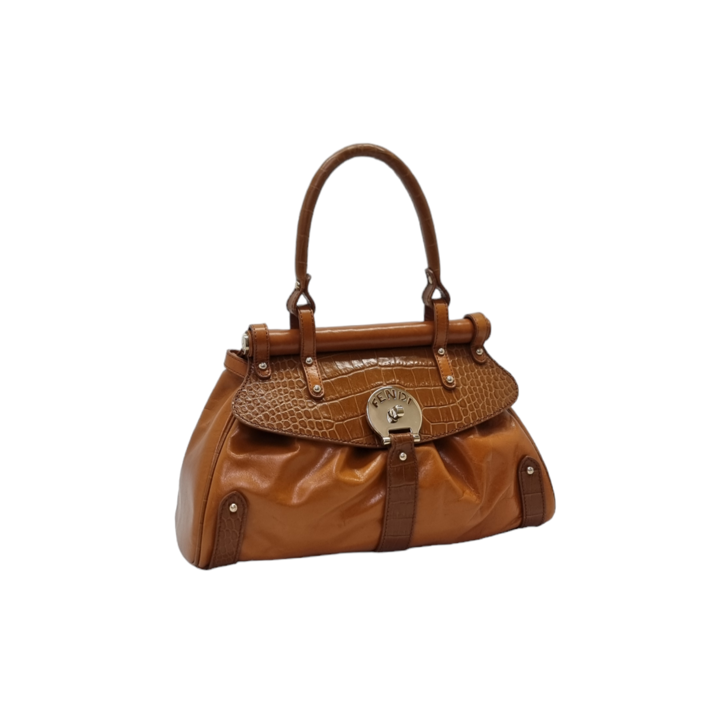 Fendi Borsa Magic Croc Embossed Leather Top Handle Bag Ghw (Brown)