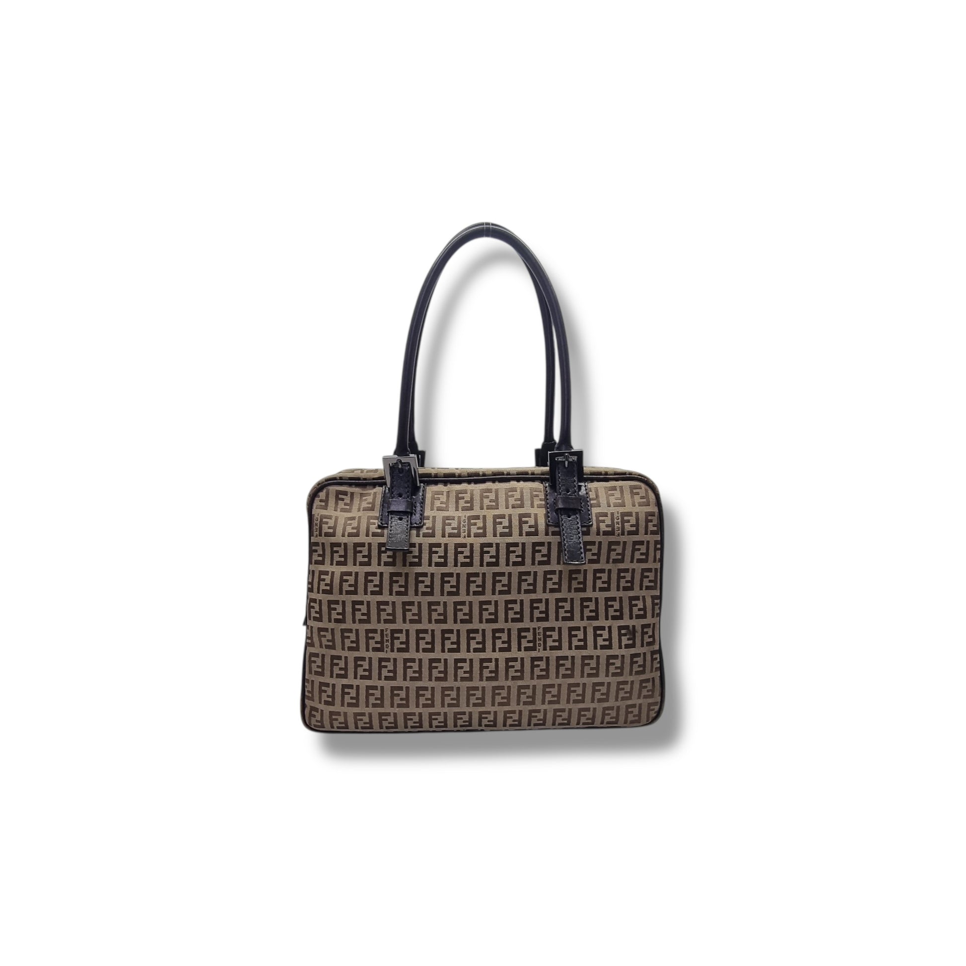 Fendi Zucchino Canvas Shoulder Bag Shw( Brown)