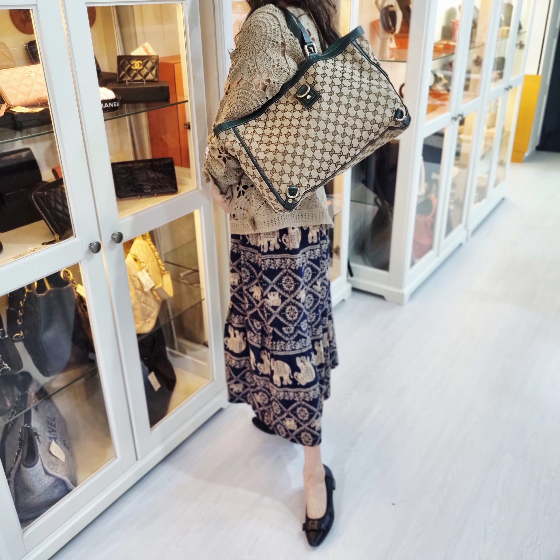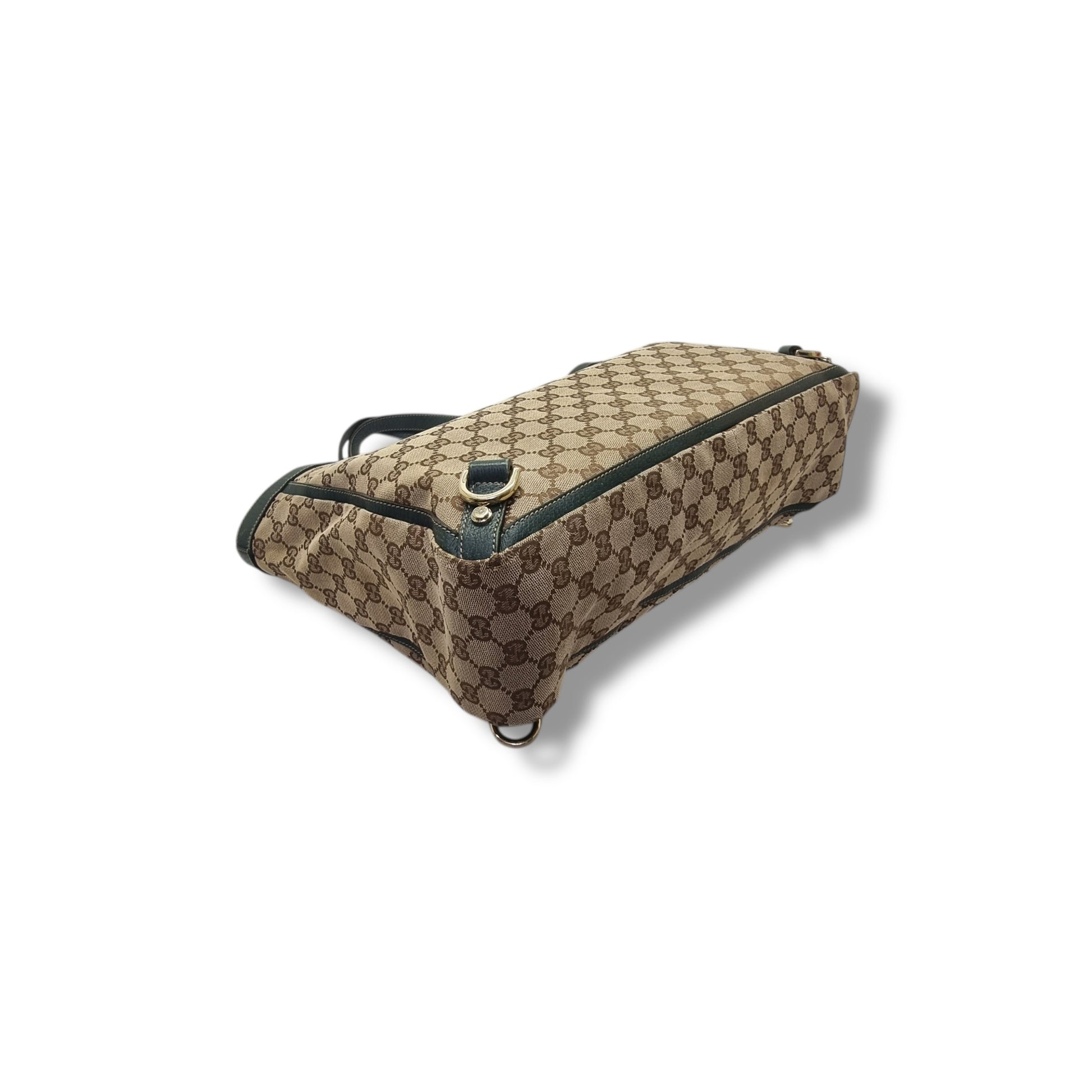 Gucci GG Abbey D-Ring Canvas Shoulder Bag Ghw (Beige/Dark Green)