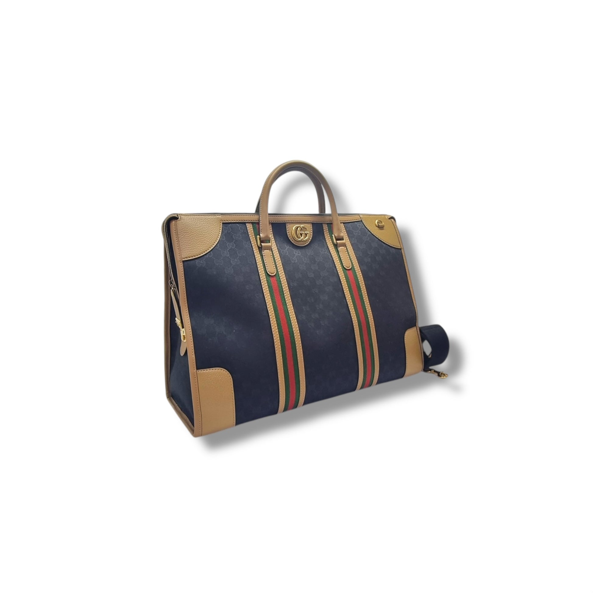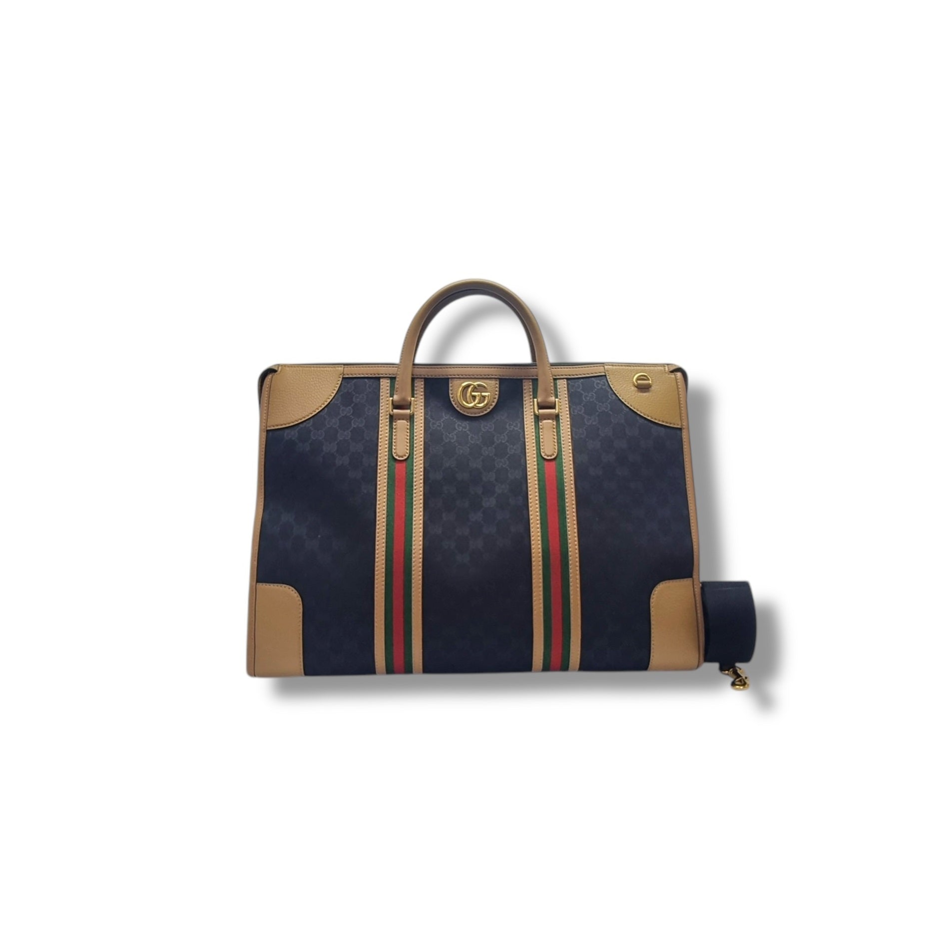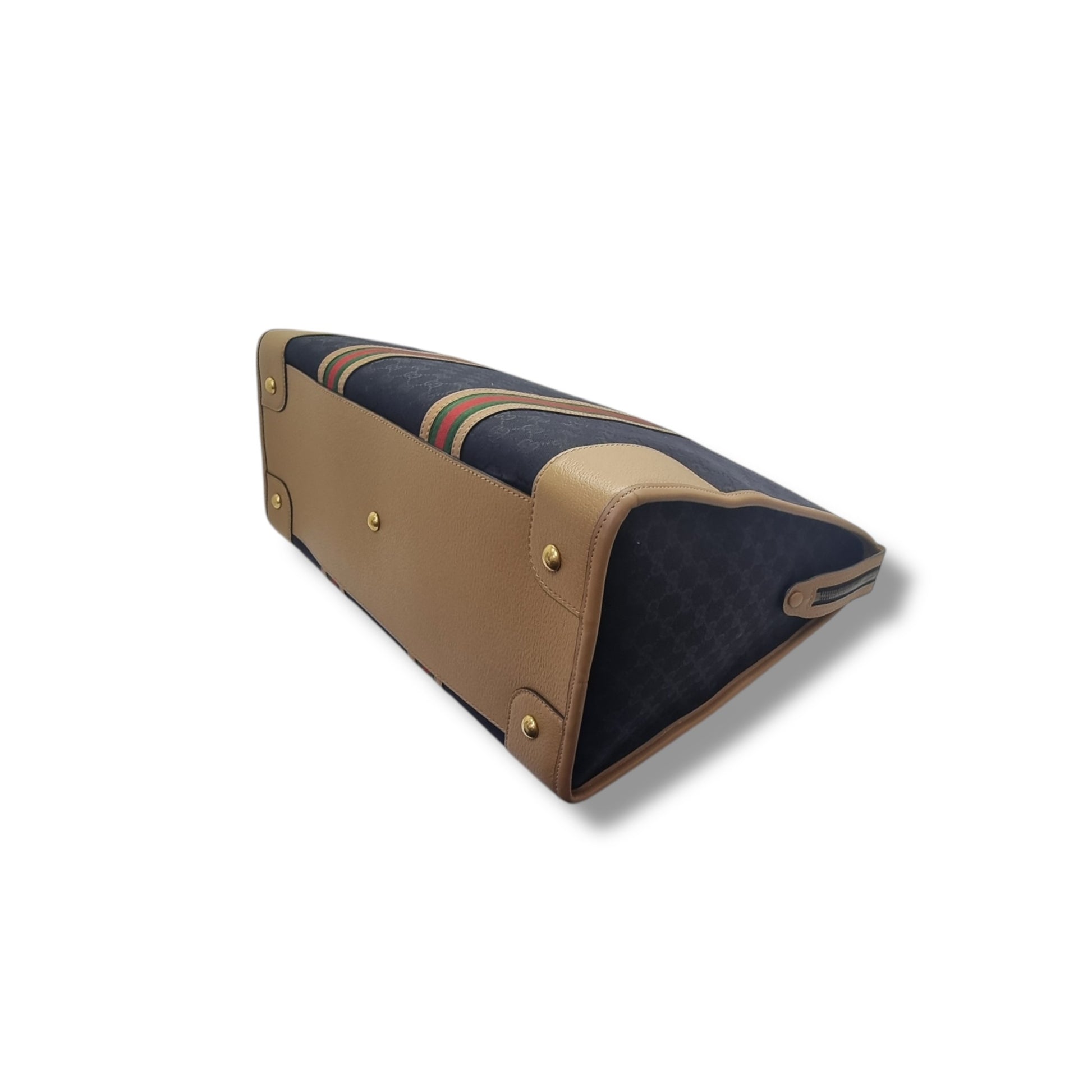 Gucci GG Bauletto Duffle Extra Large Canvas Bag Ghw (Black/Brown)