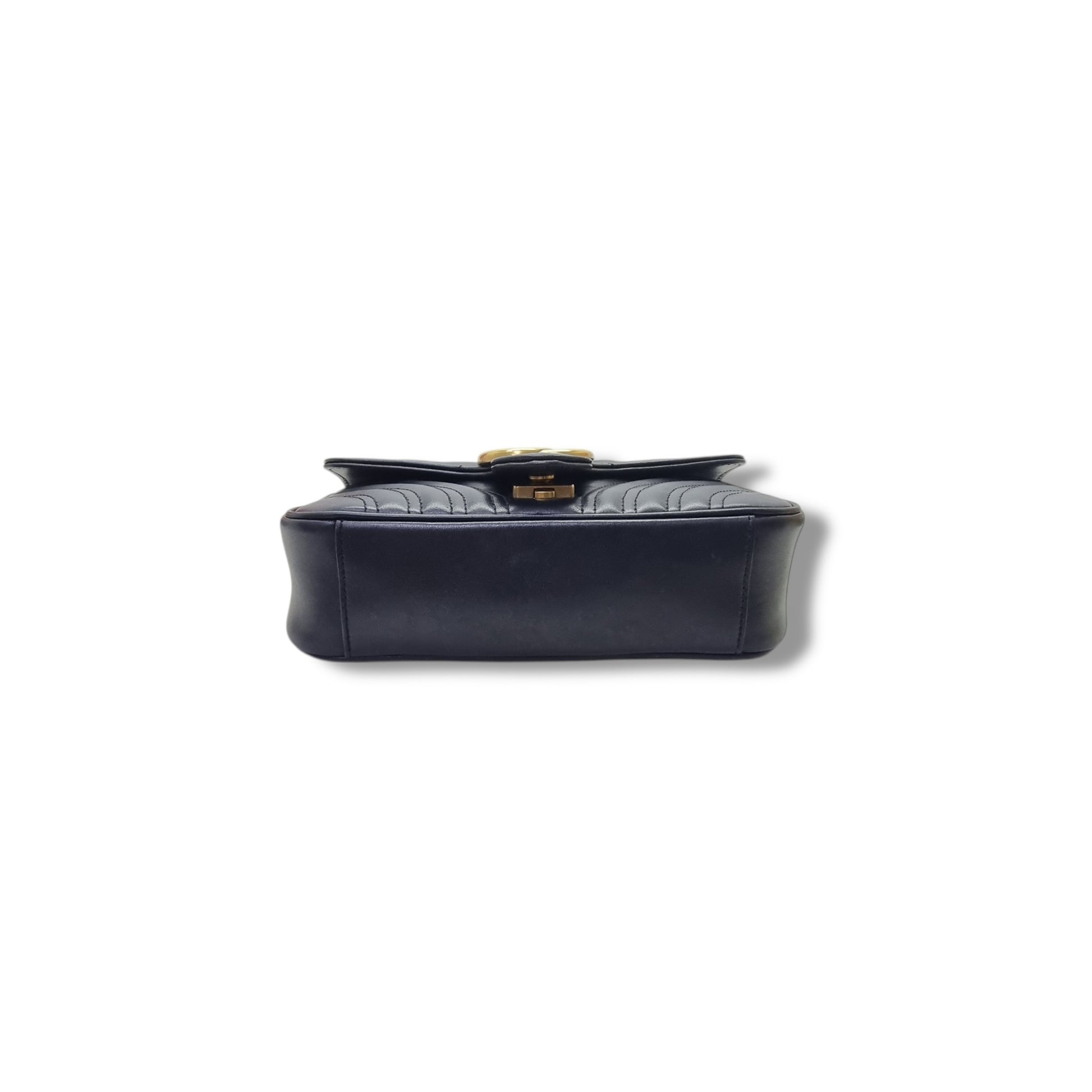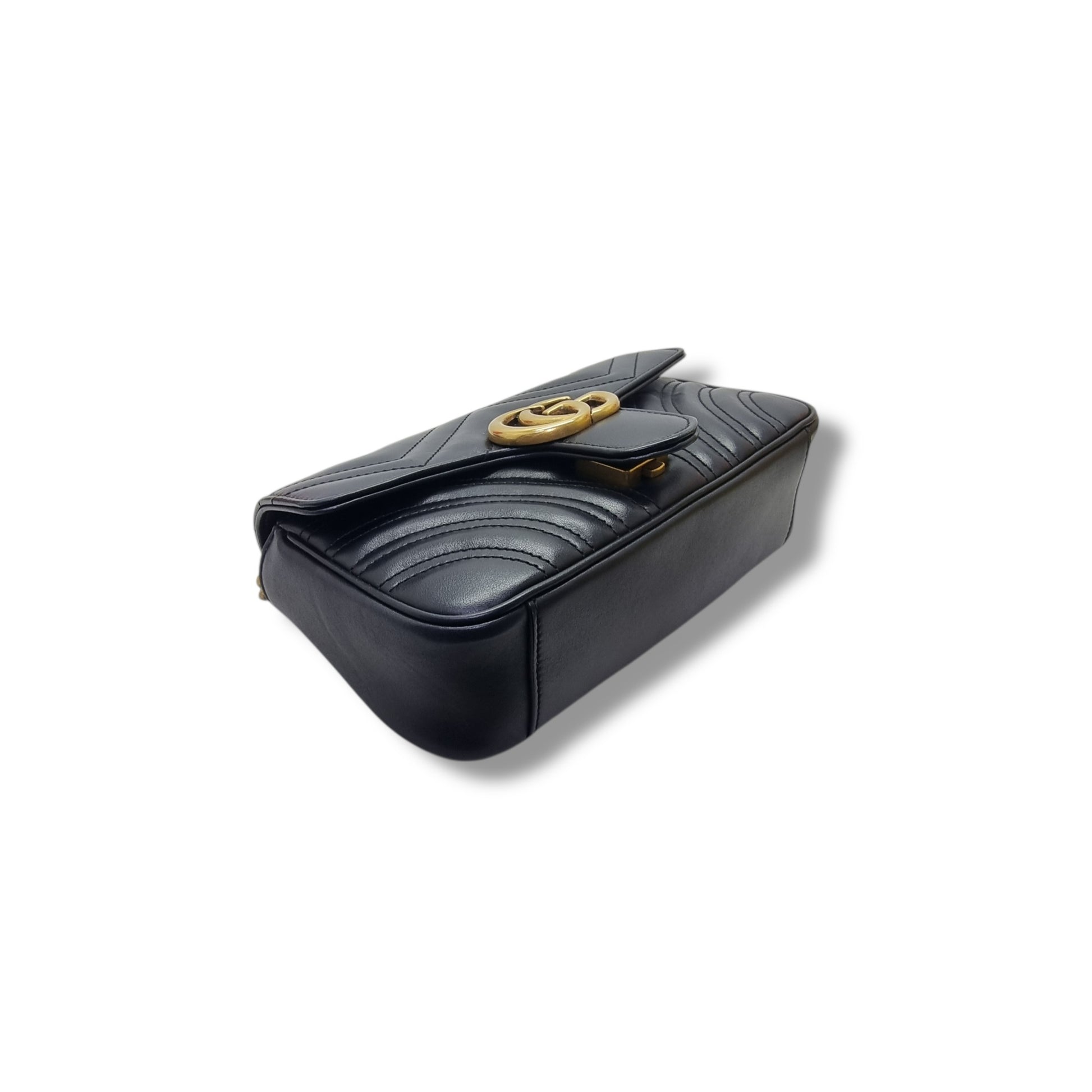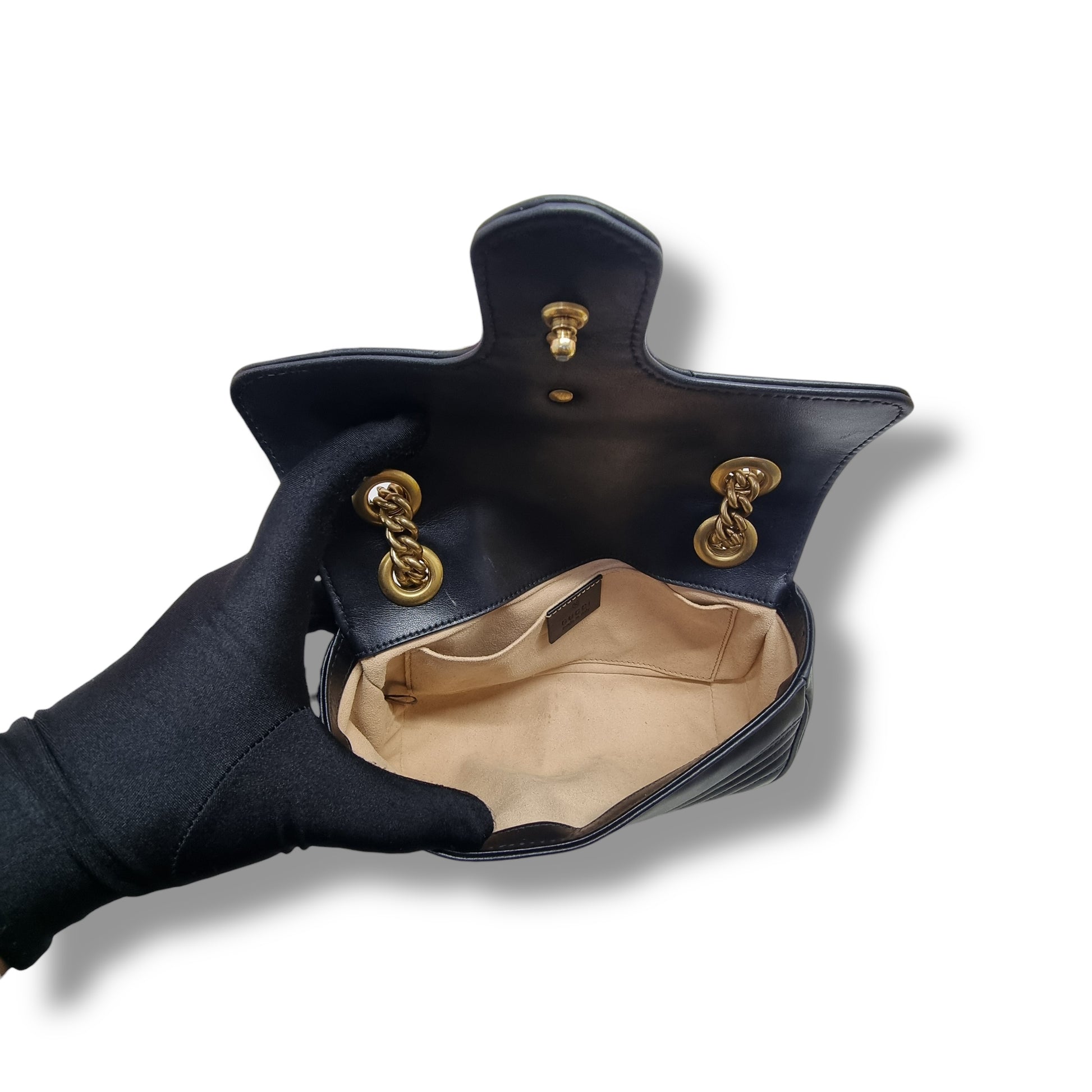 Gucci GG Marmont Small Matelasse Chevron Leather Bag Ghw (Black)