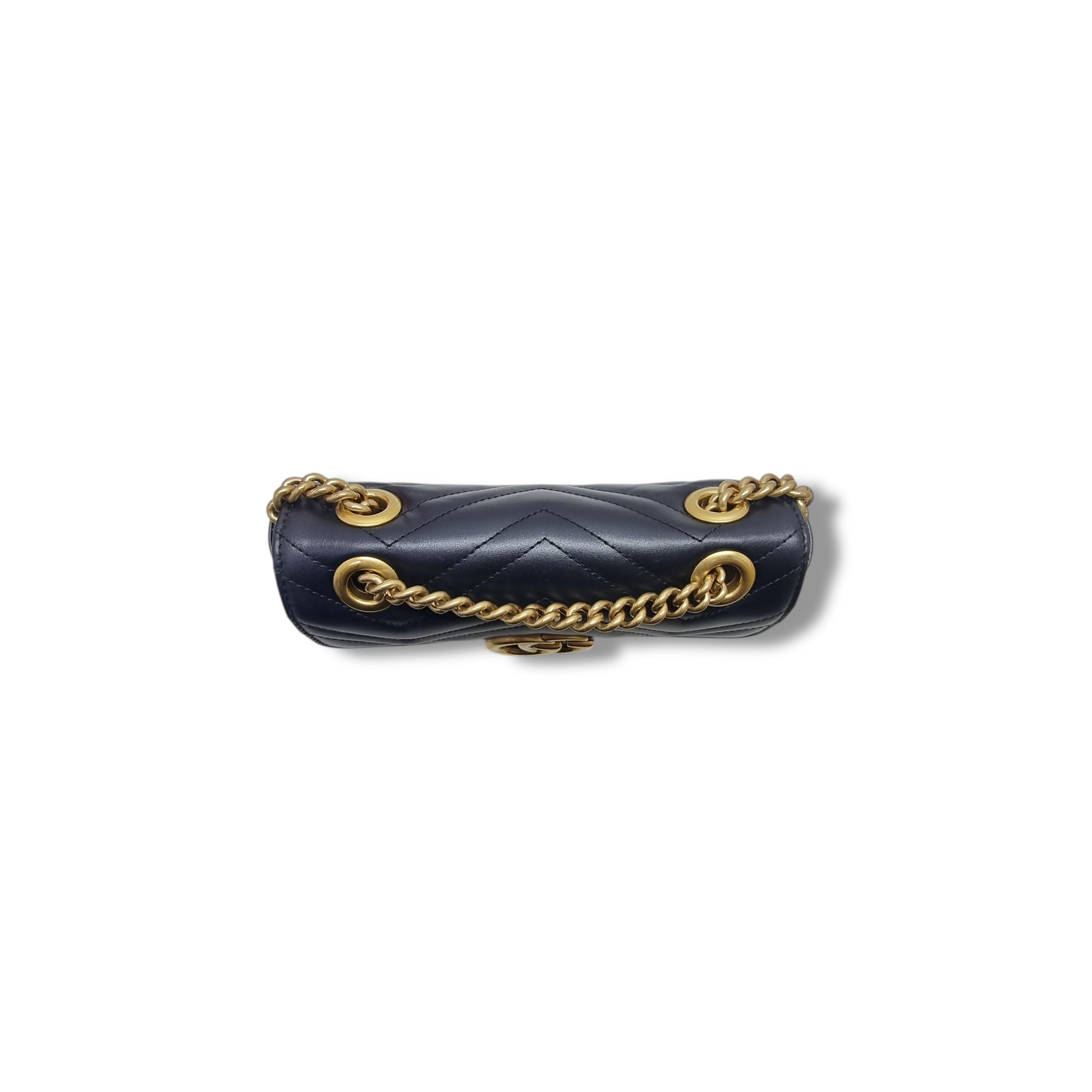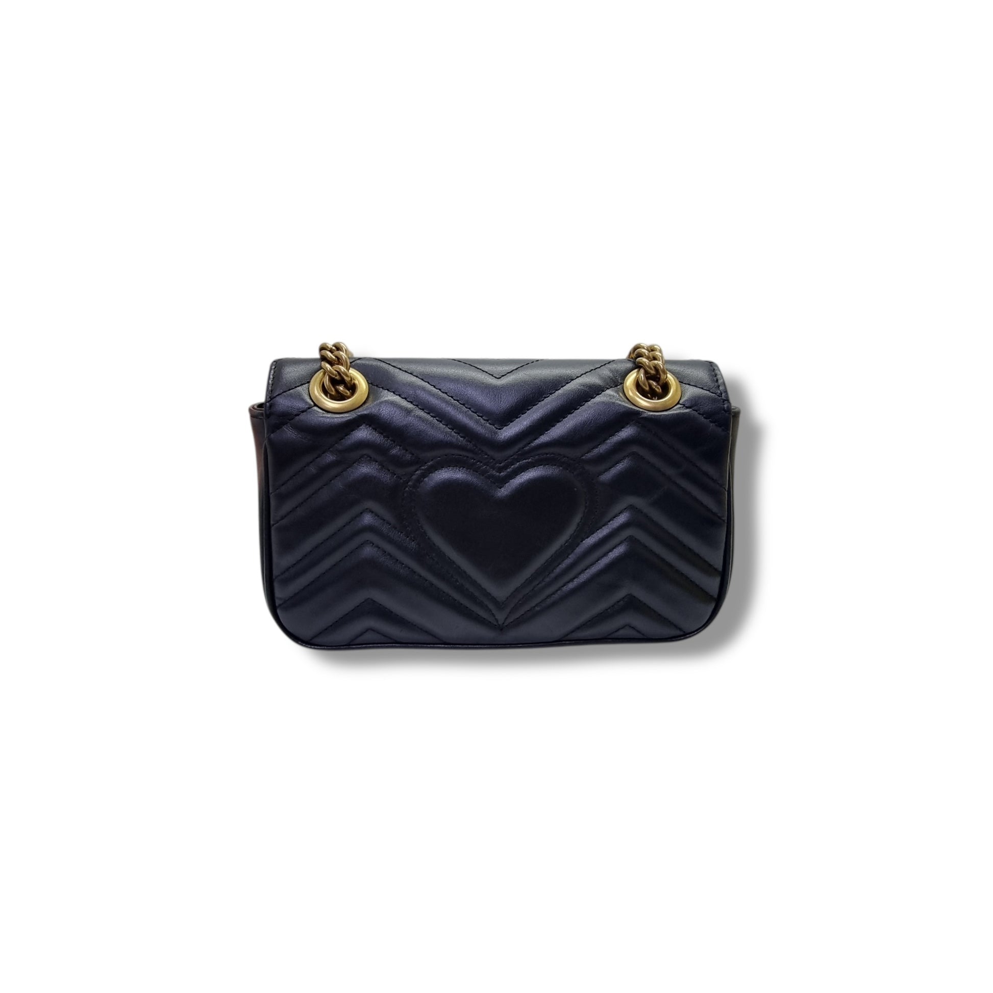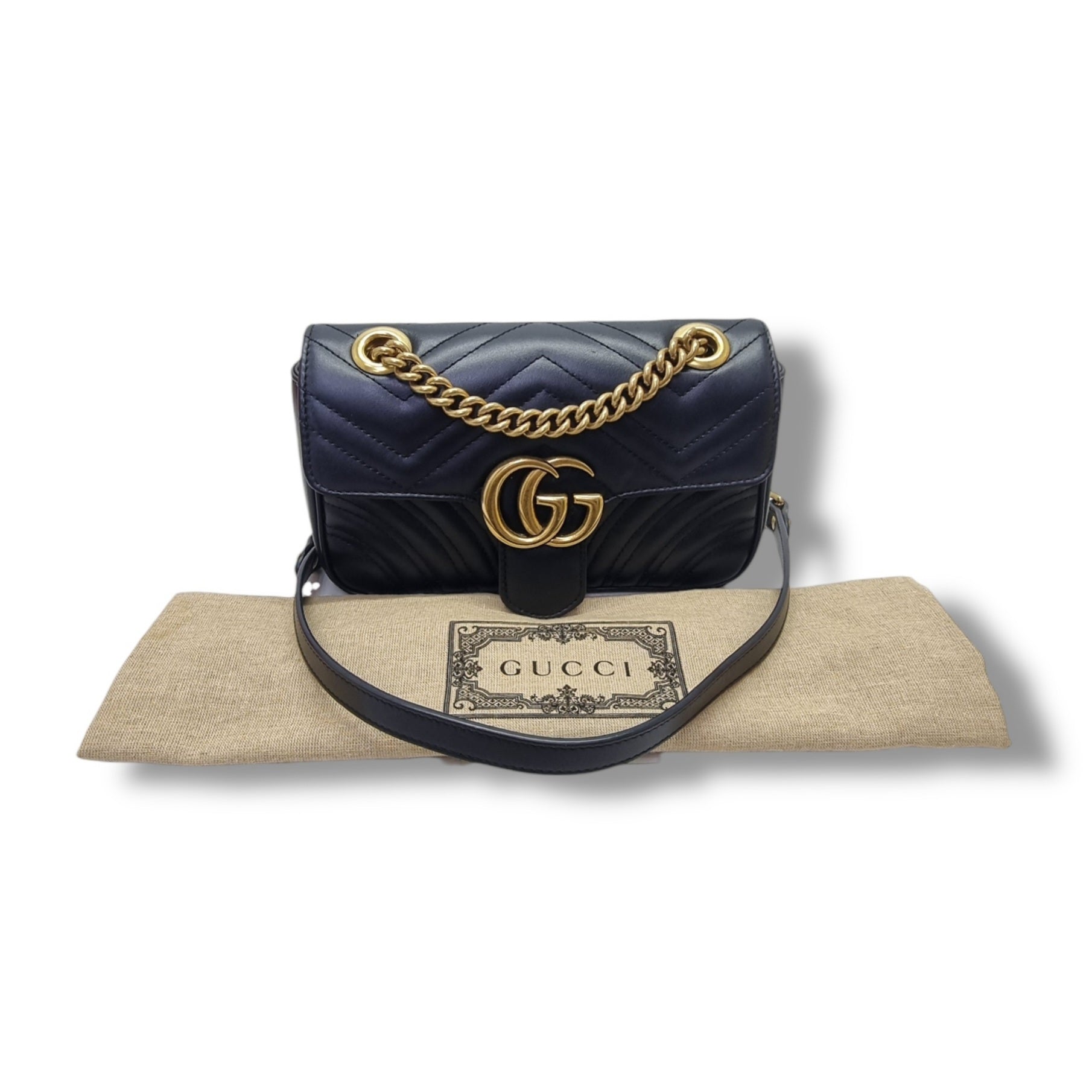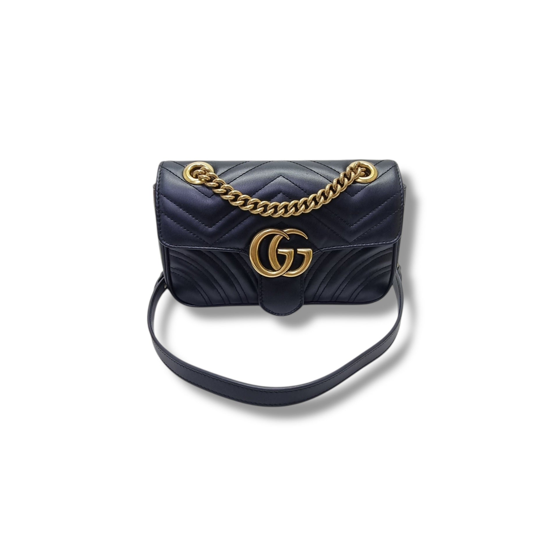 Gucci GG Marmont Small Matelasse Chevron Leather Bag Ghw (Black)