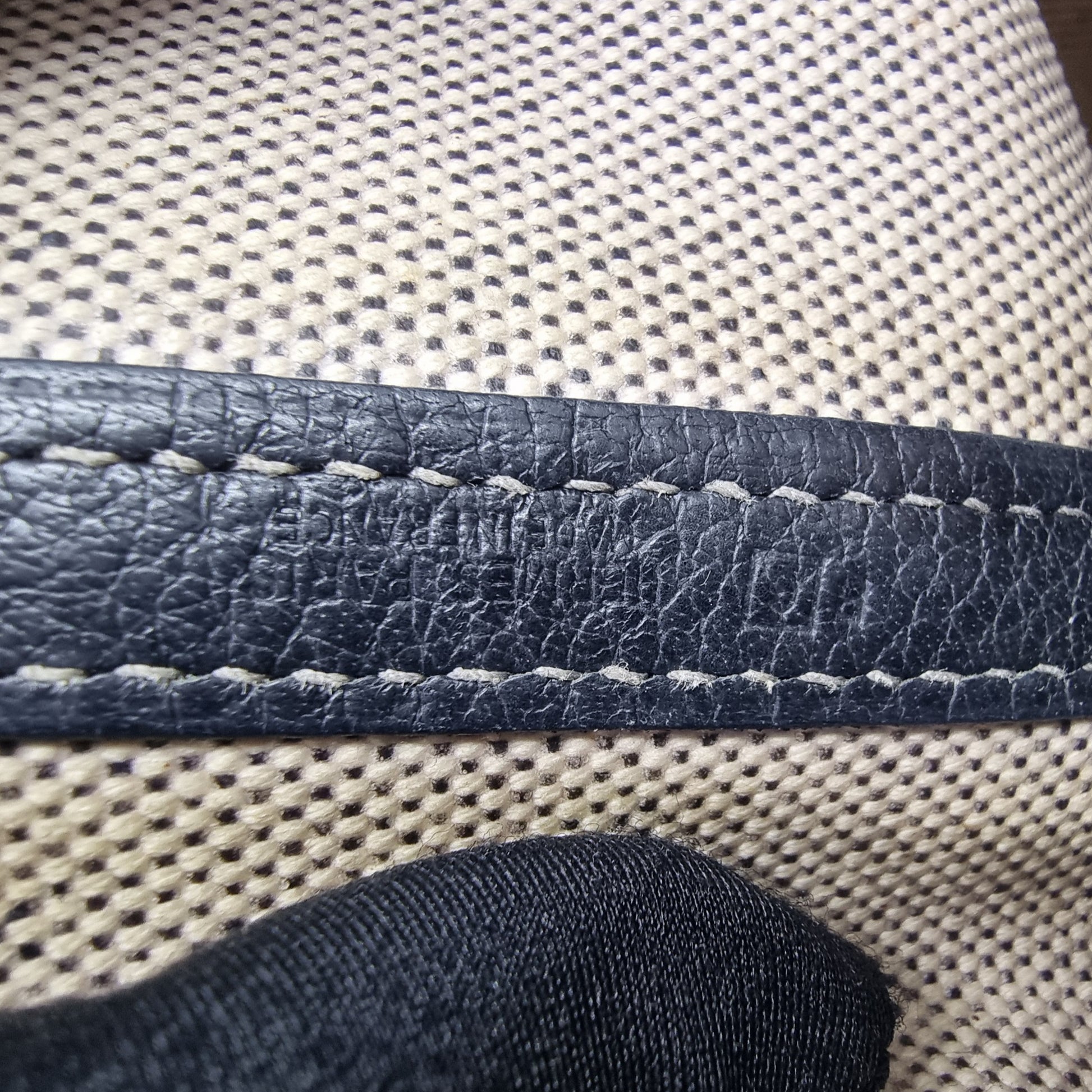 Exterior : Has slight unnoticeable scruffs. Overall in very good condition with buffalo leather handles and trim, snap closure.