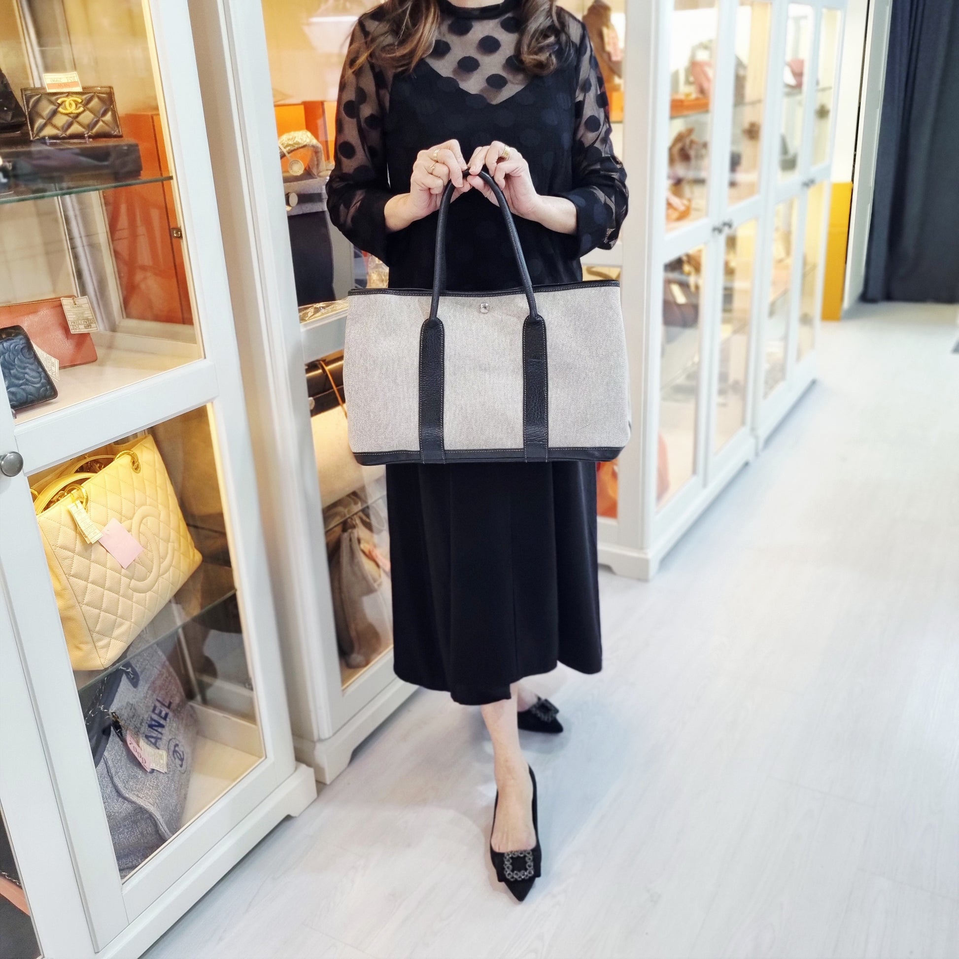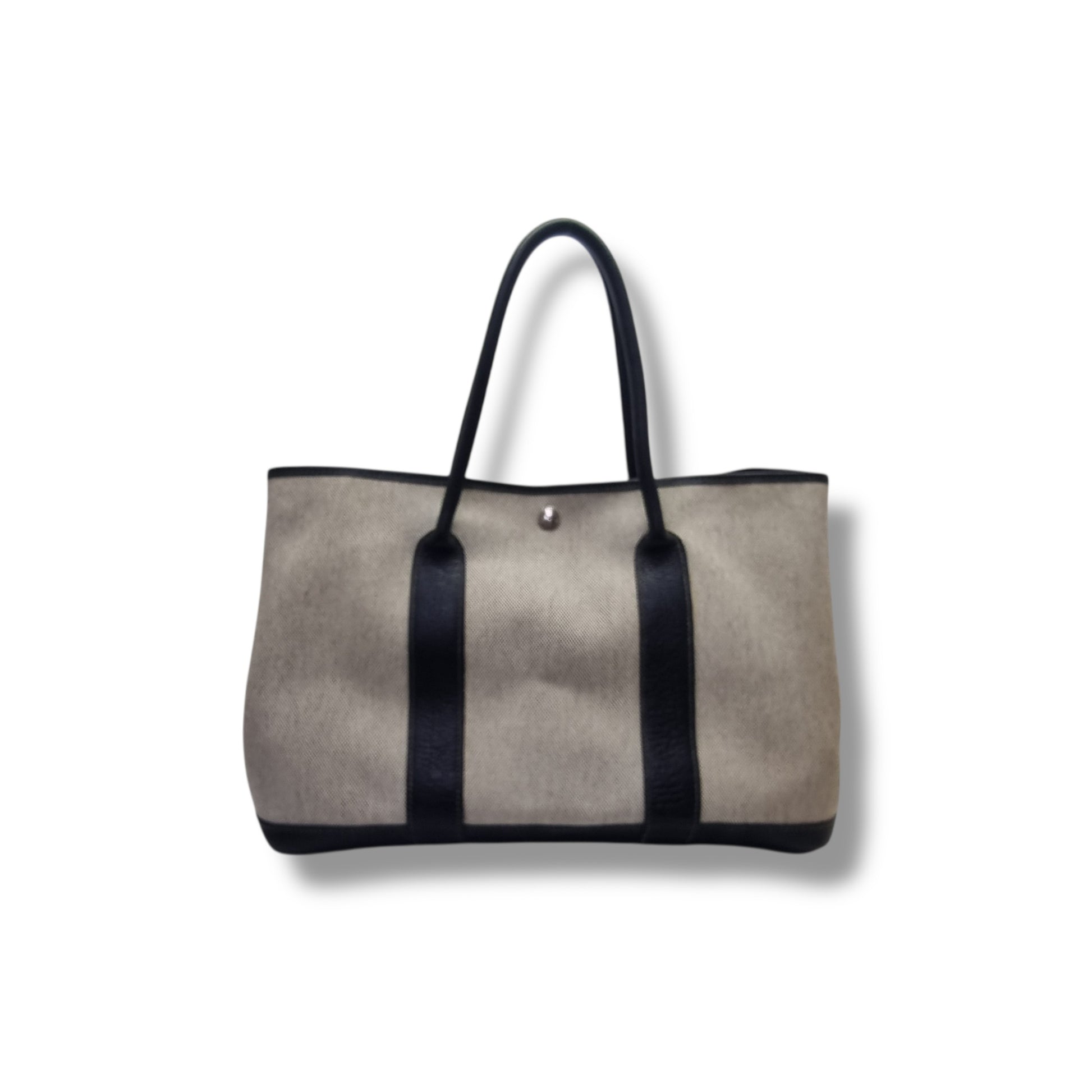 Hermes Garden Party Canvas 36 PM Palladium Coated Hardware (Beige/Black)
