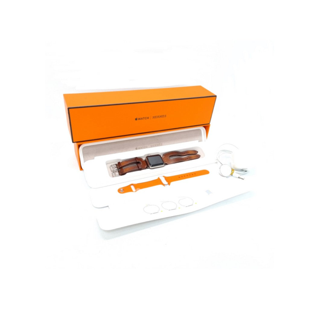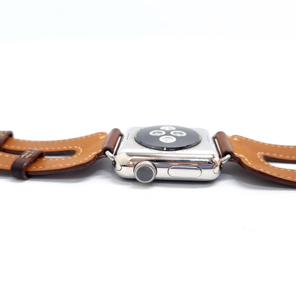 Hermes 2nd Series Apple Watch Double Buckle Cuff Etoupe Swift Leather Brown Shw