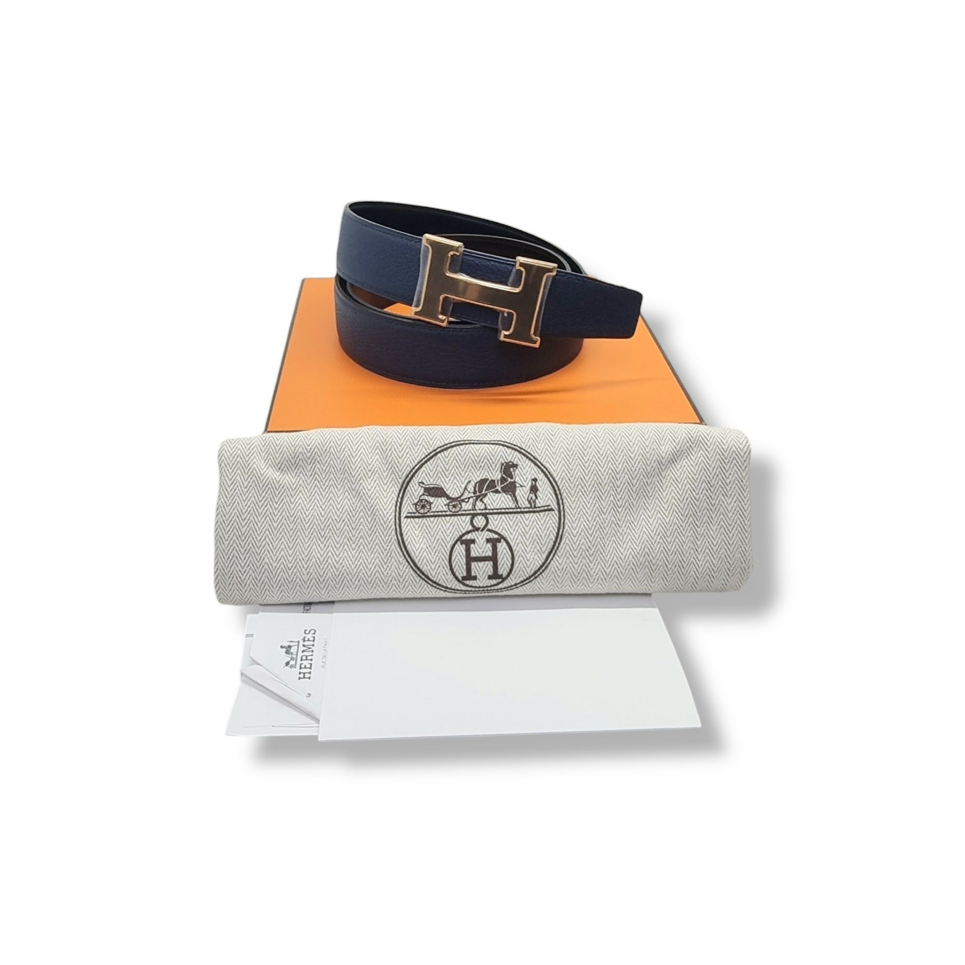 Hermes Constance Reversible Belt Leather Rhw (Black/Blue)