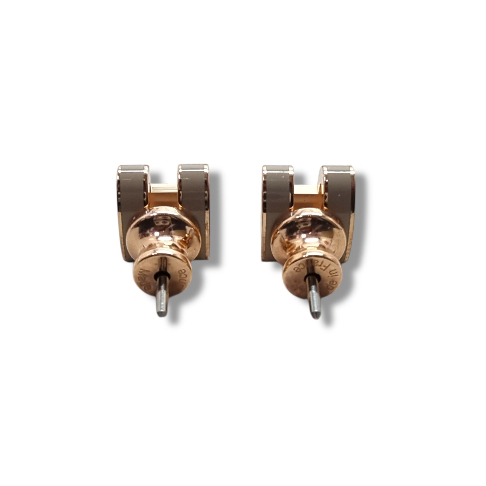 Hermes Mini Pop H Earrings Rose Gold Plated (Marron Glaze)