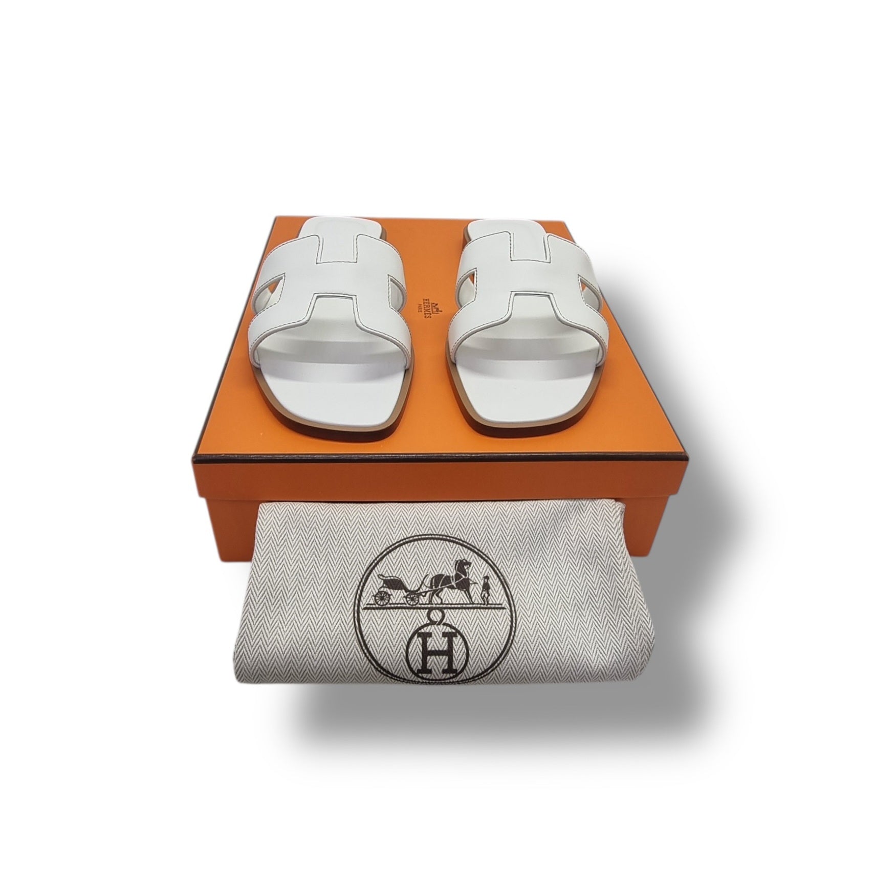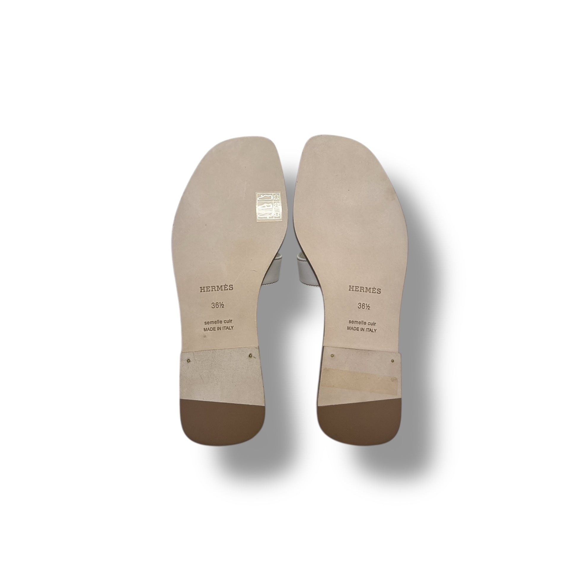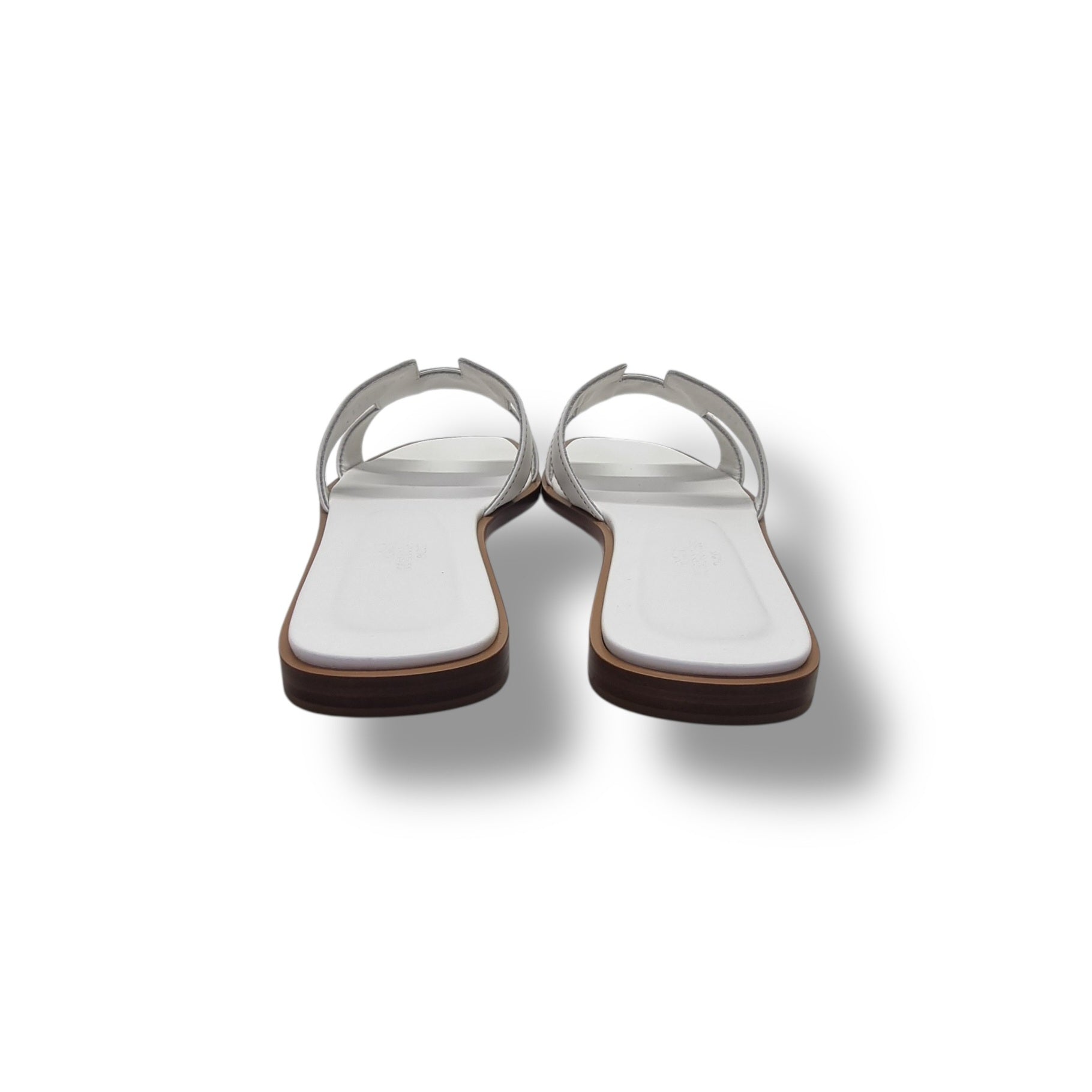 Details : Featuring : Sandal in Box calfskin with iconic "H" cut-out, natural leather sole, white lining.