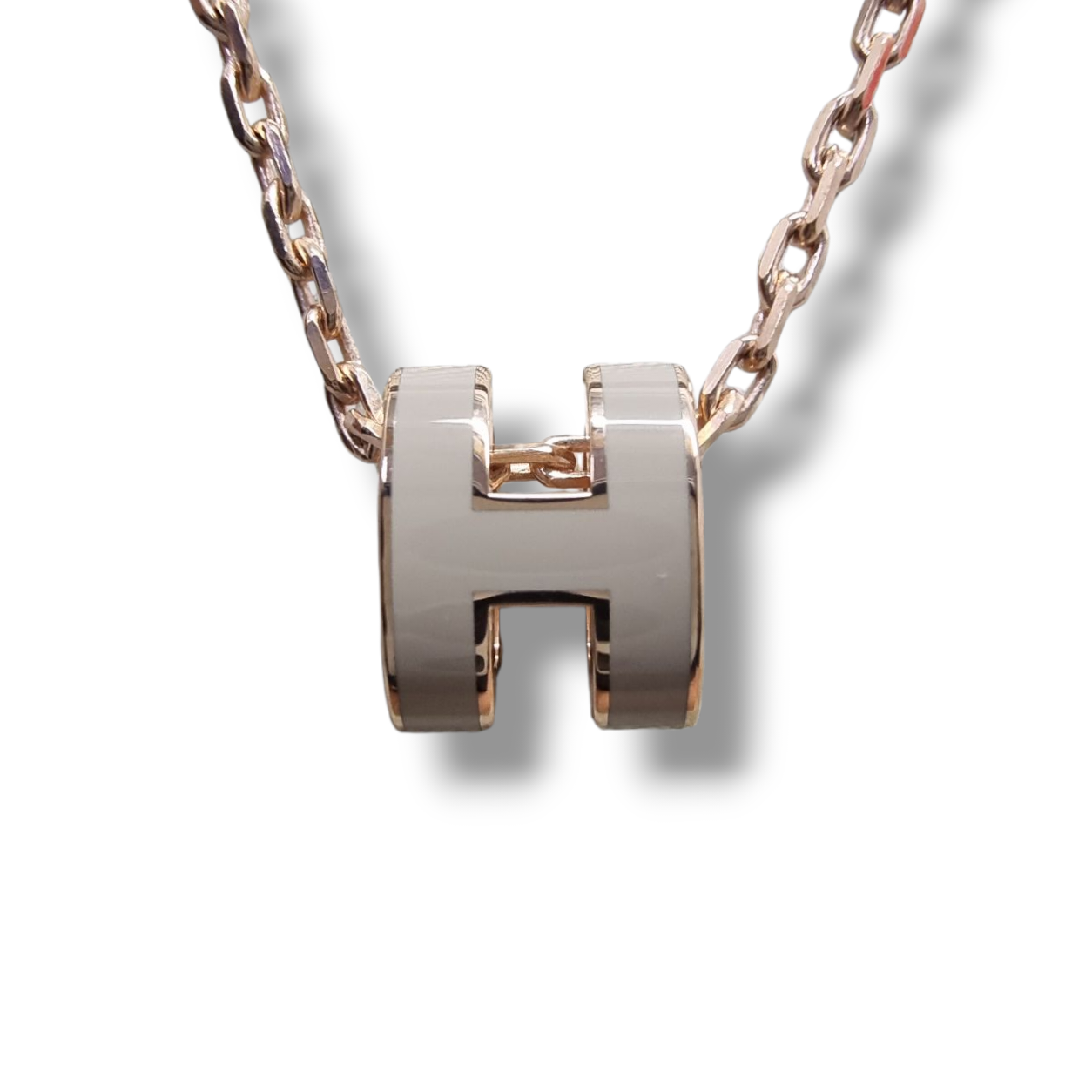 Hermes Necklace Pendant Mini Pop H Rose Gold Plated (Marron Glaze)