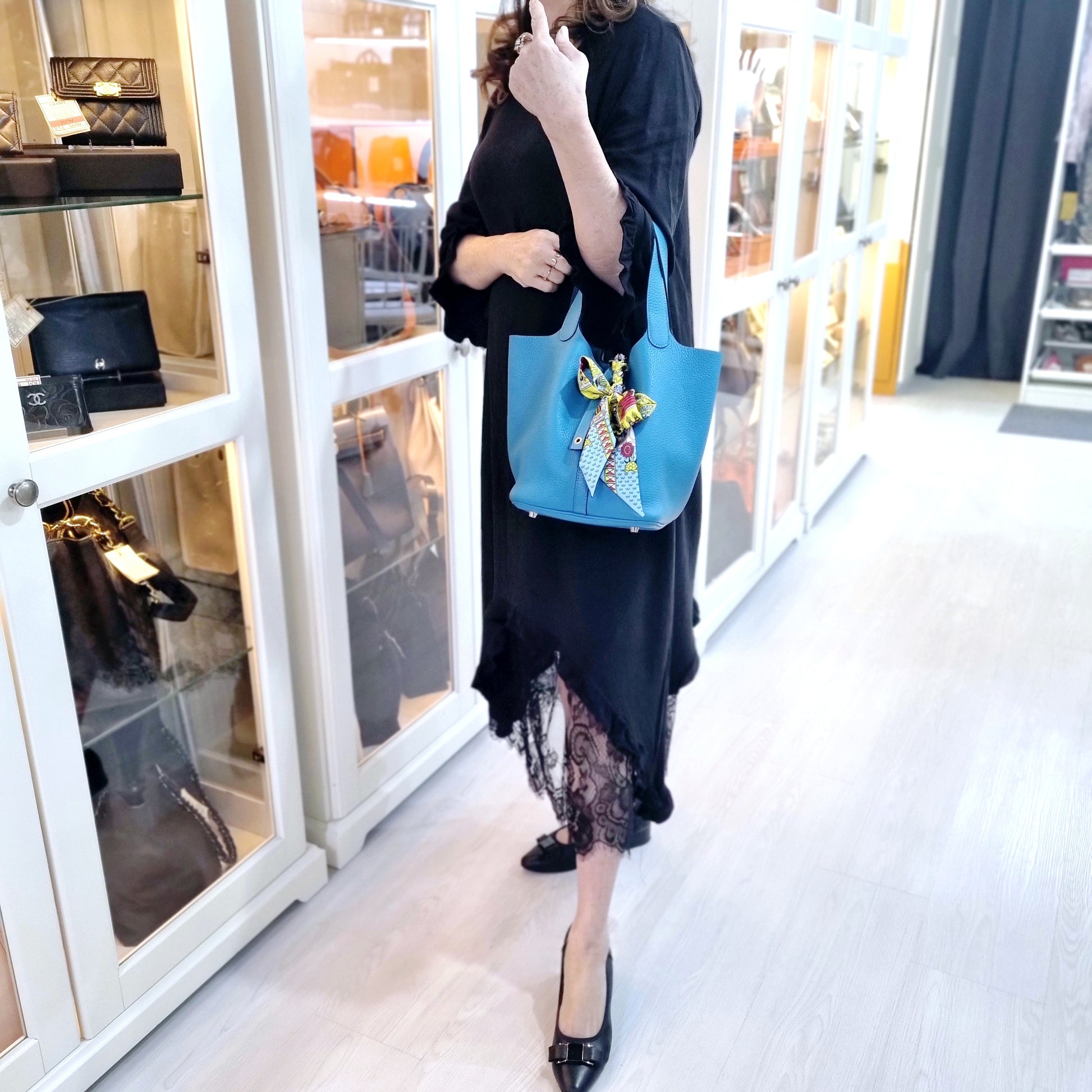Hermes Picotin Lock 22 Clemence Palladium Plated Hw (Blue Paon)