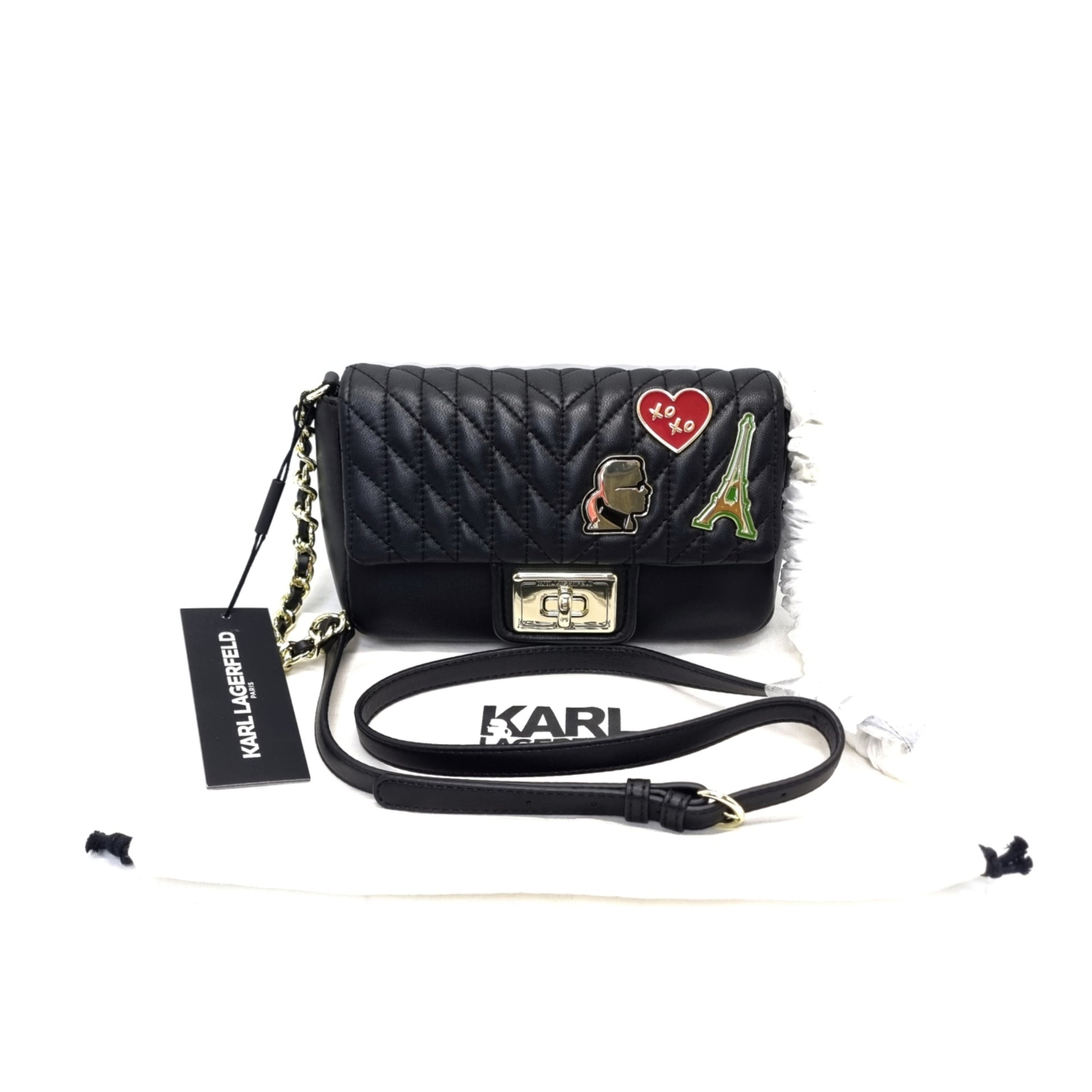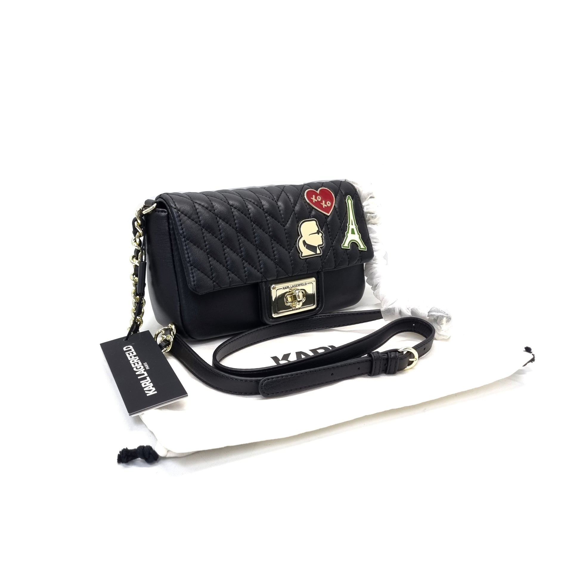 Karl Lagerfeld Agyness Faux Leather Crossbody Bag Shw (Black)