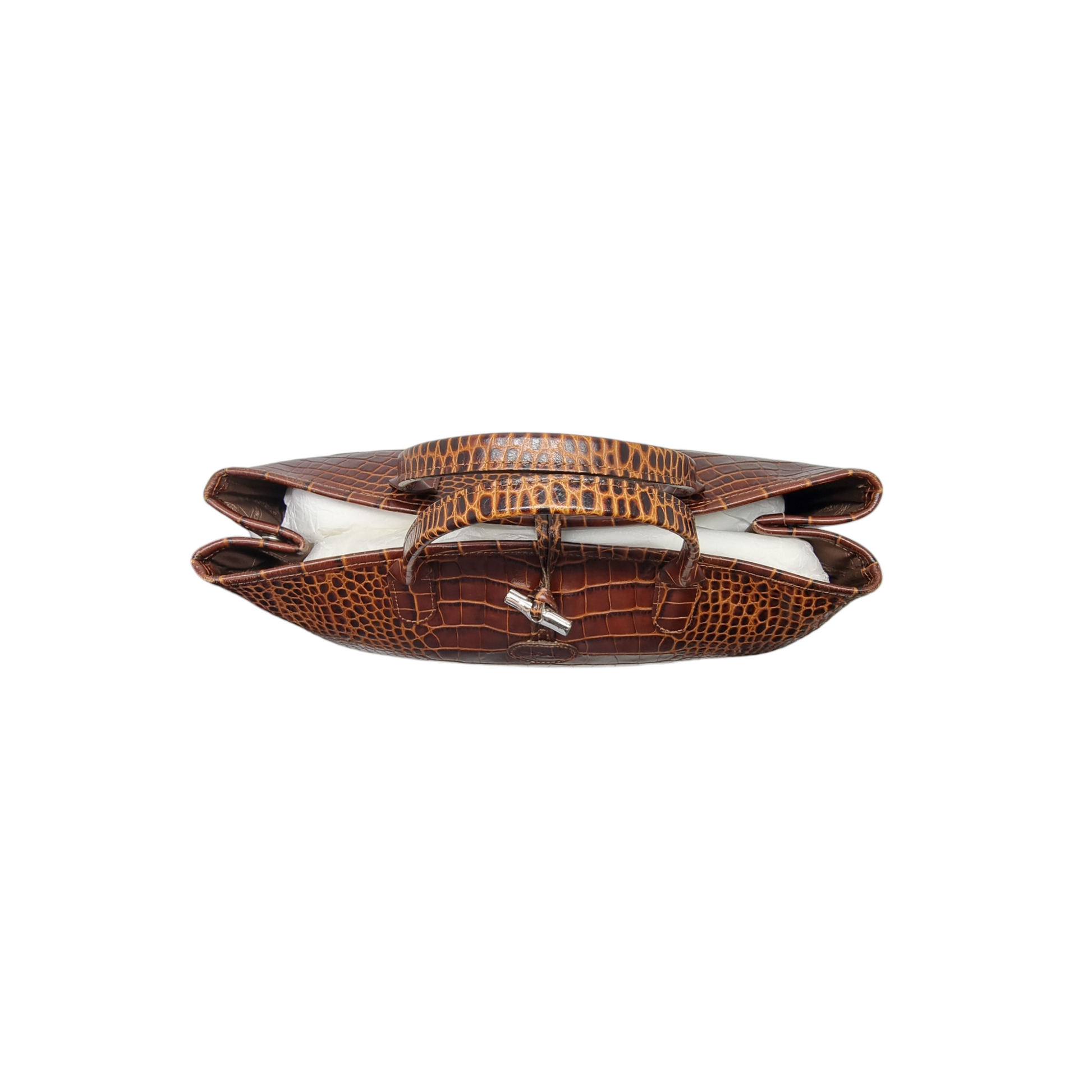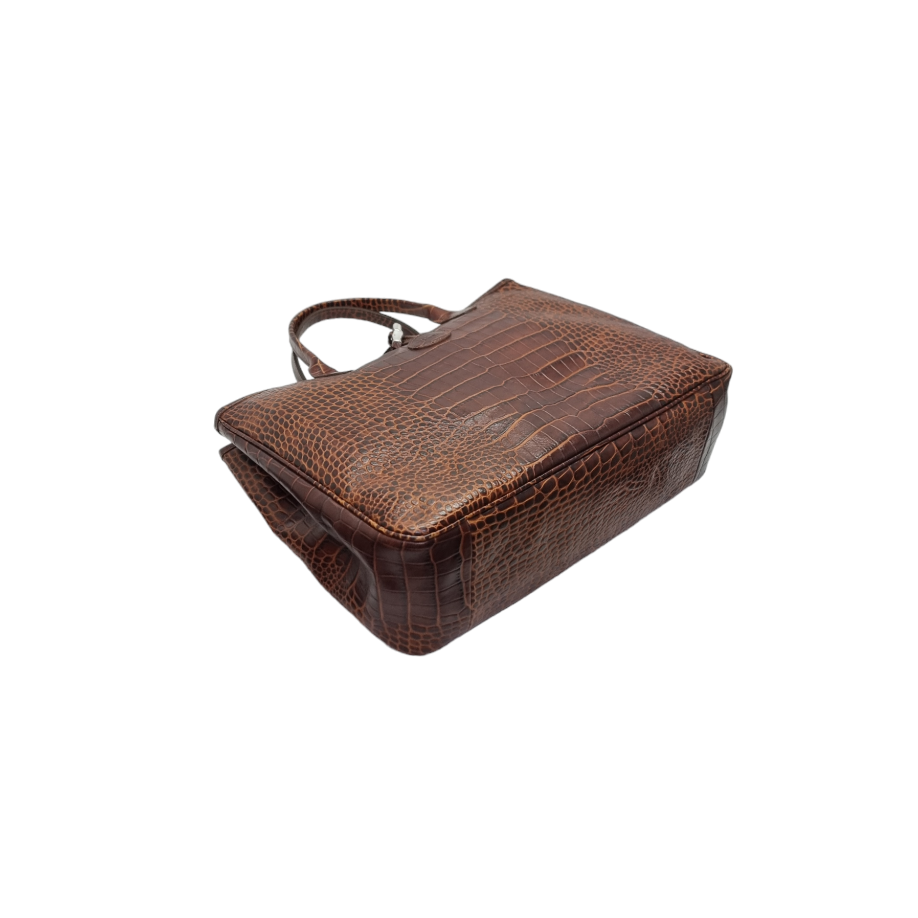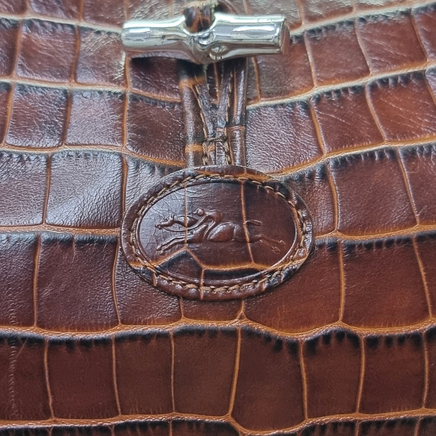 Longchamp Roseau Croc Embossed Leather Top Handle Bag Shw (Dark Brown)