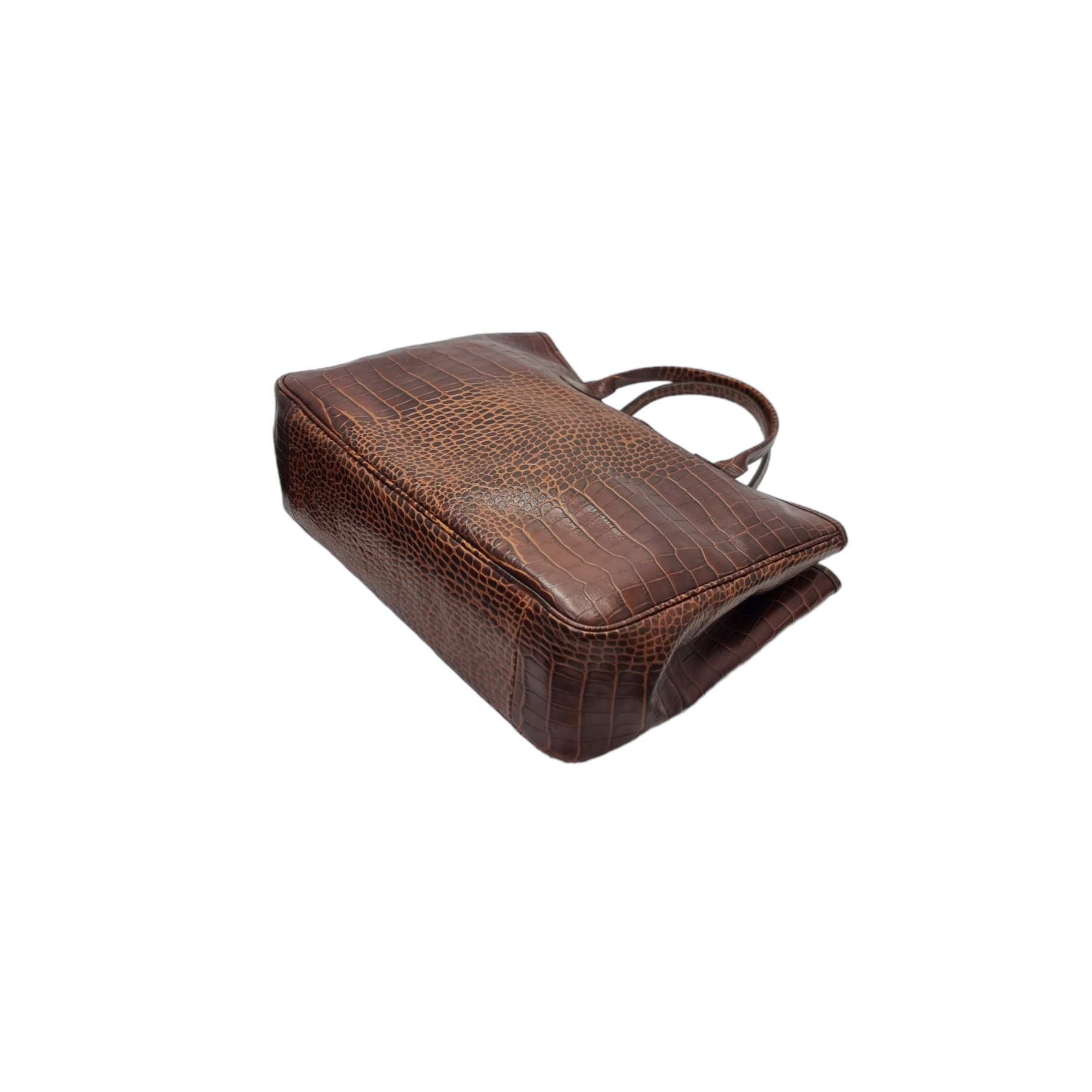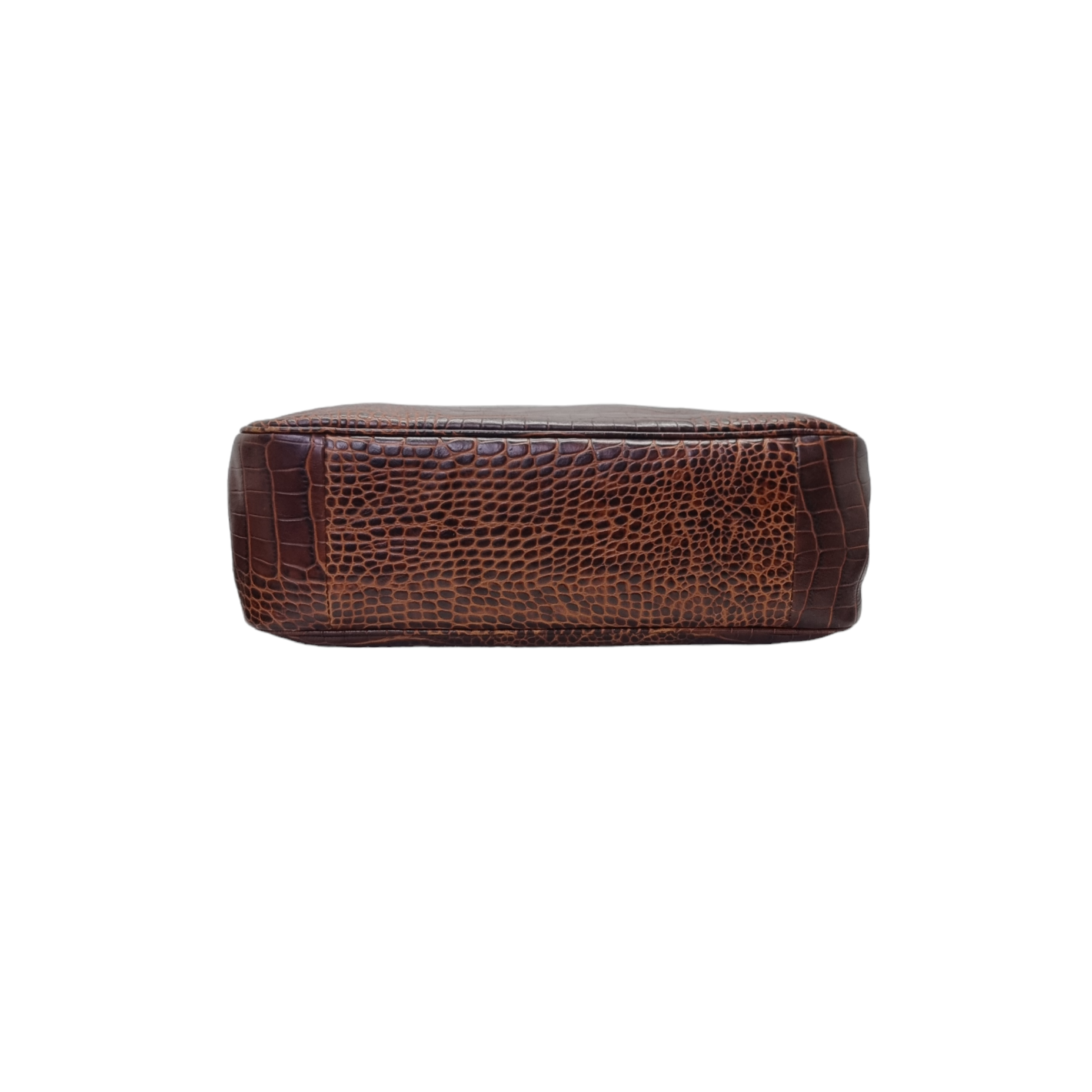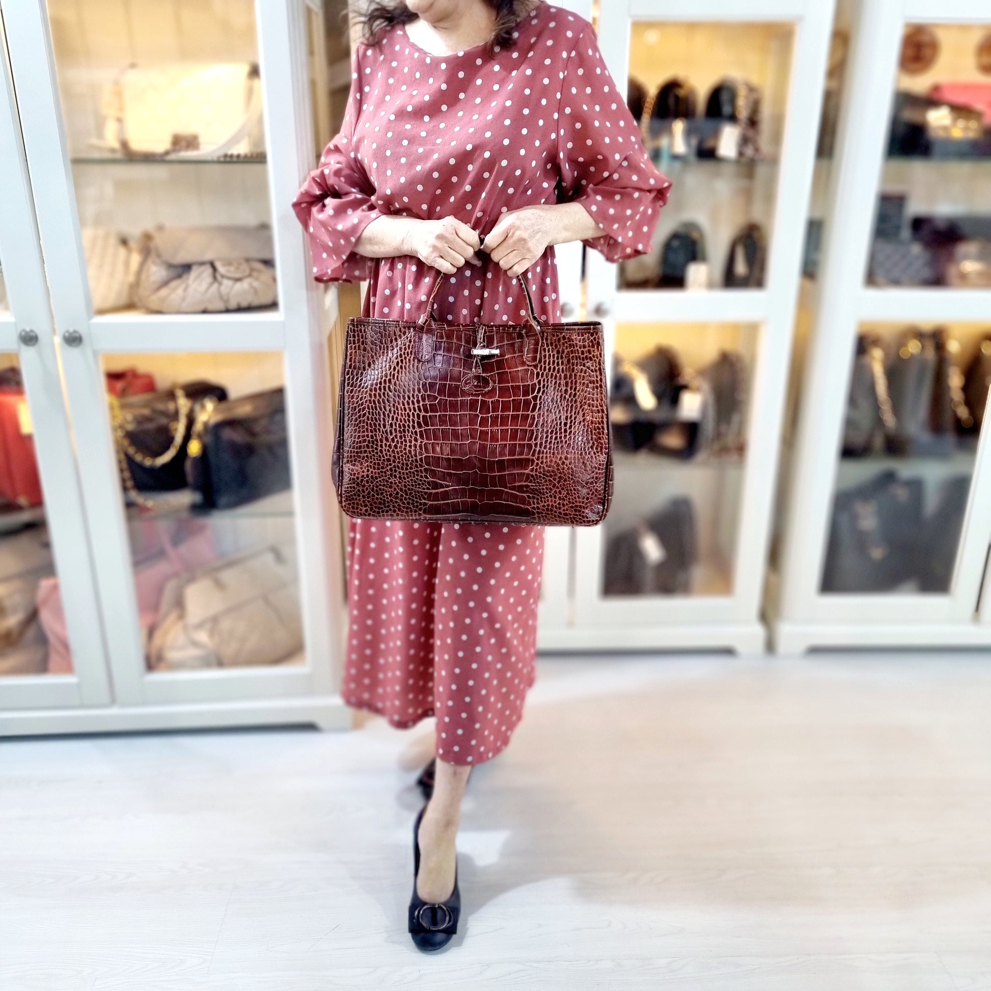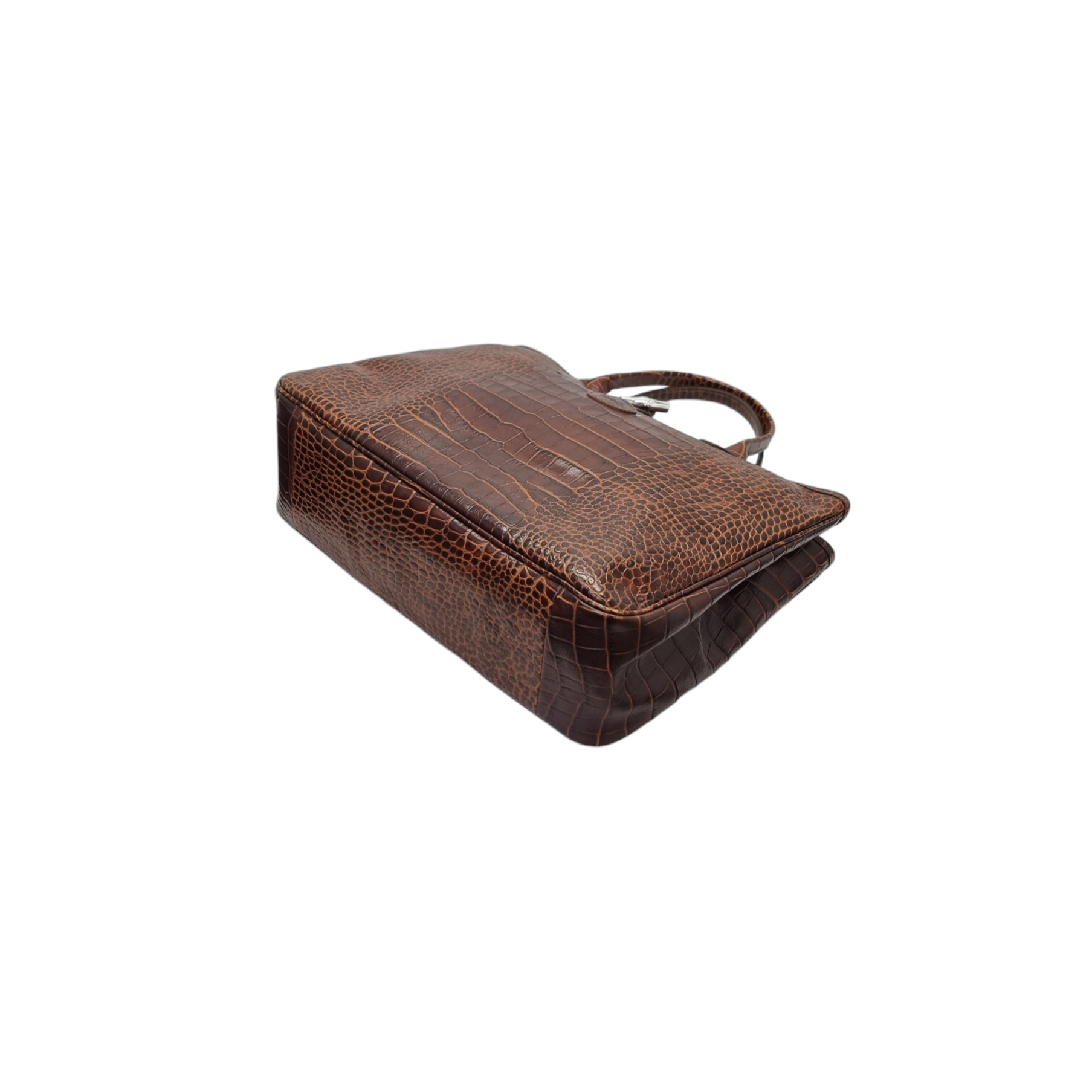 Longchamp Roseau Croc Embossed Leather Top Handle Bag Shw (Dark Brown)