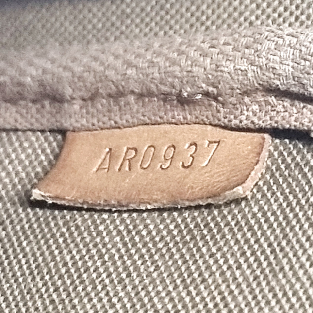Exterior : The canvas is clean but the handle has darkened and creasing. The hardware has faded. Overall in good condition with top zip closure and removable leather handle.