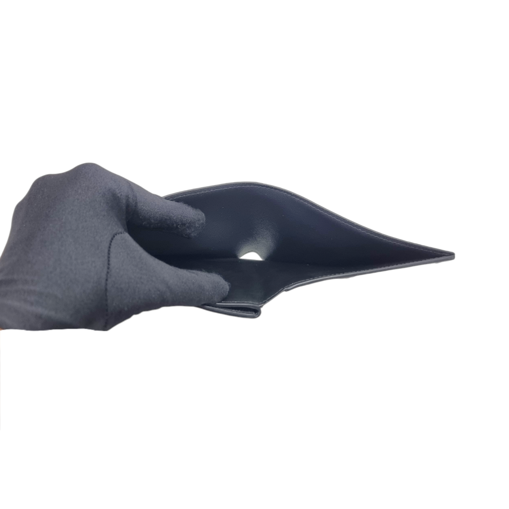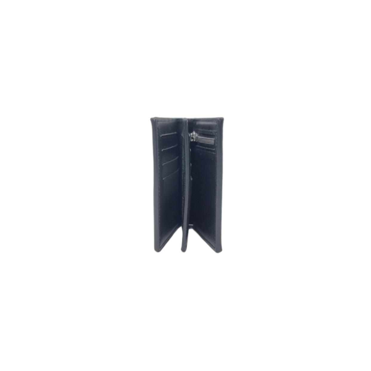 Interior : Very clean with 8 card slots, 2 flat pockets and 1 bill compartment, 1 zip compartment, transparent window for ID, cowhide leather lining.