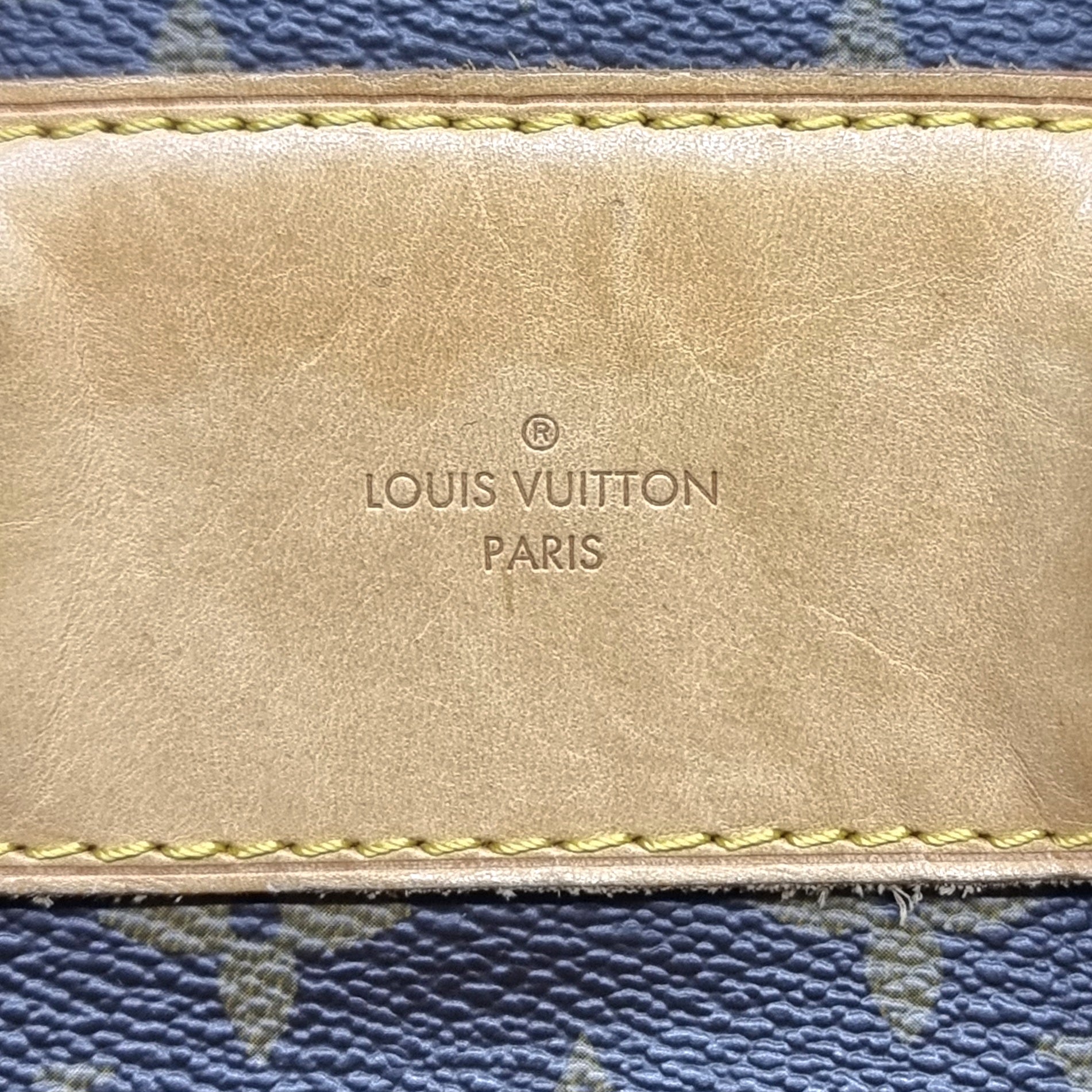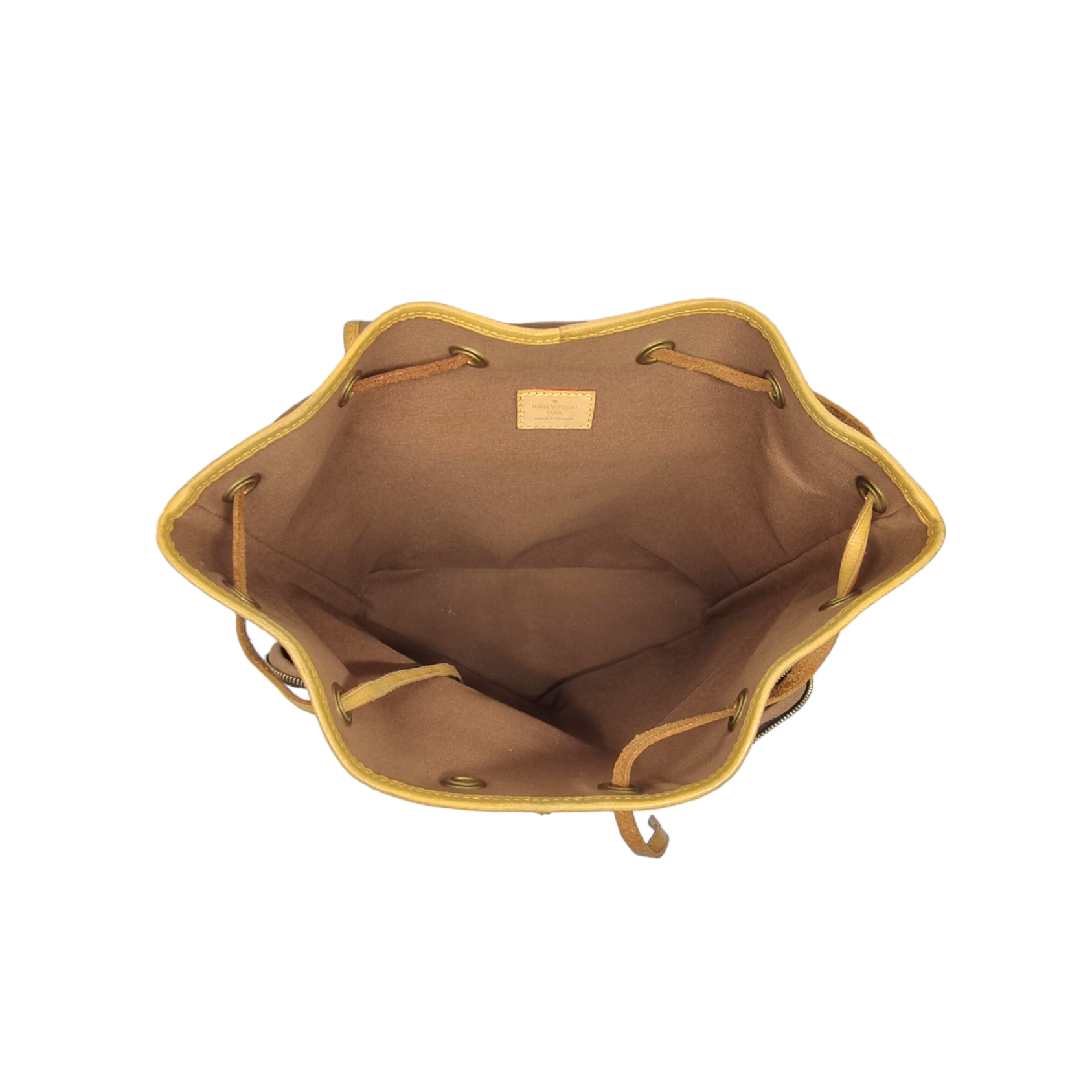 Exterior : The canvas is clean throughout but there are some stains, rubbing and discoloration on the vachetta leather. Overall in very good condition with foldover top adjustable buckle fastening, drawstring fastening, single flat handle, multiple zip fastening pockets, adjustable backpack straps.