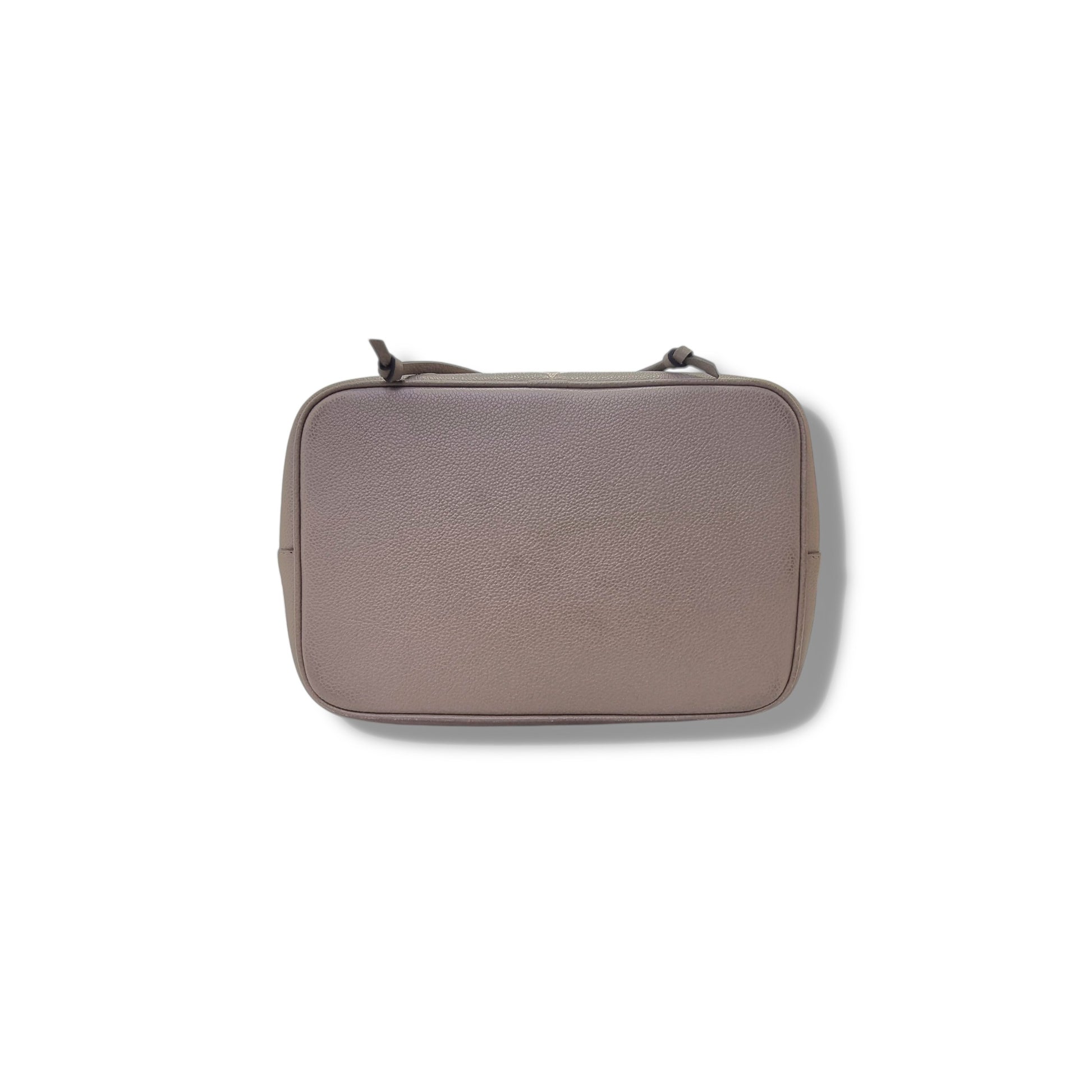 Exterior : The exterior is clean and beautiful throughout. The hardware slightly discoloration and hairline scratches. The 4 corners has minor rubbing and scratches on the handle. Can be worn crossbody or over the shoulder. Overall is very good condition with detachable leather handle, drawstring closure to main compartment.