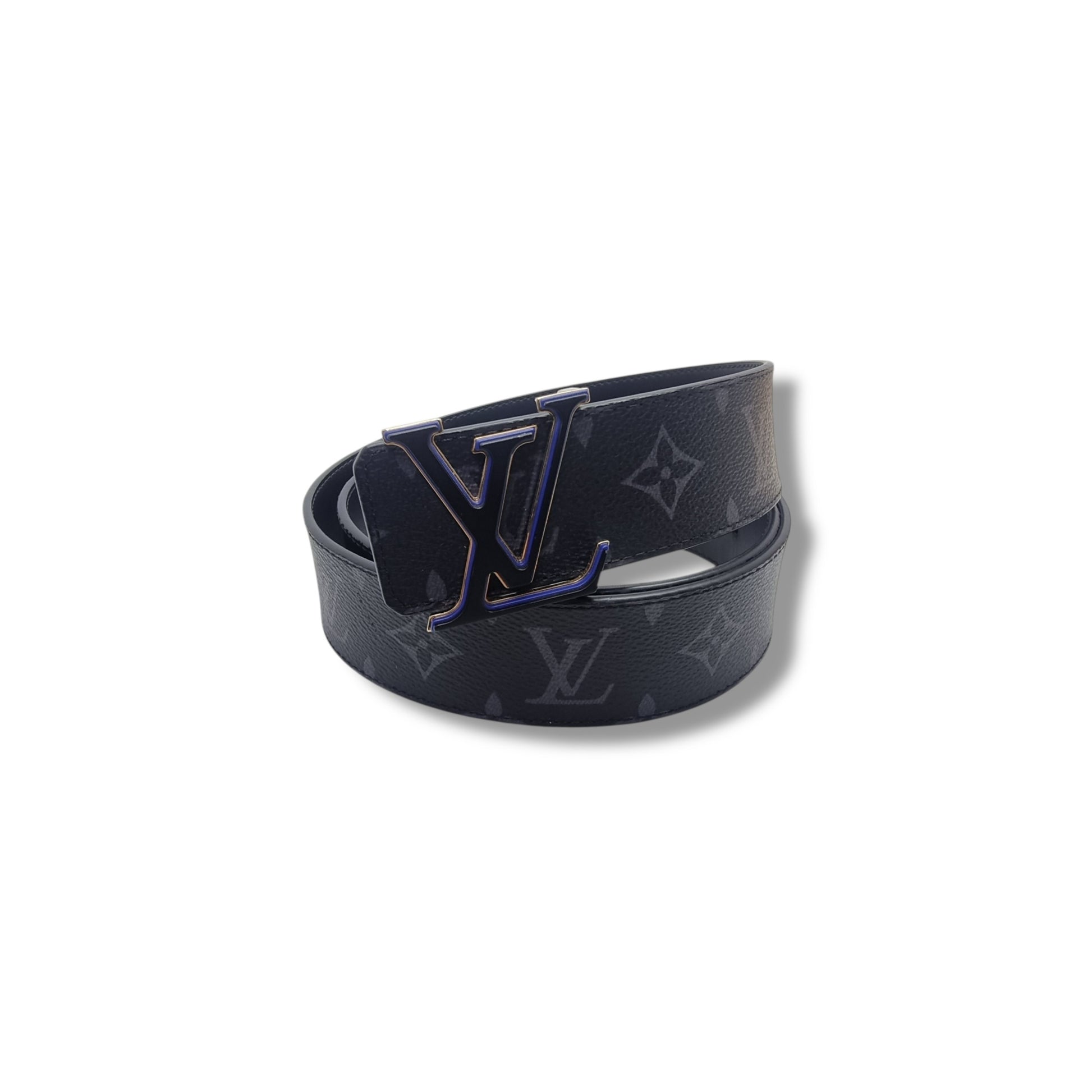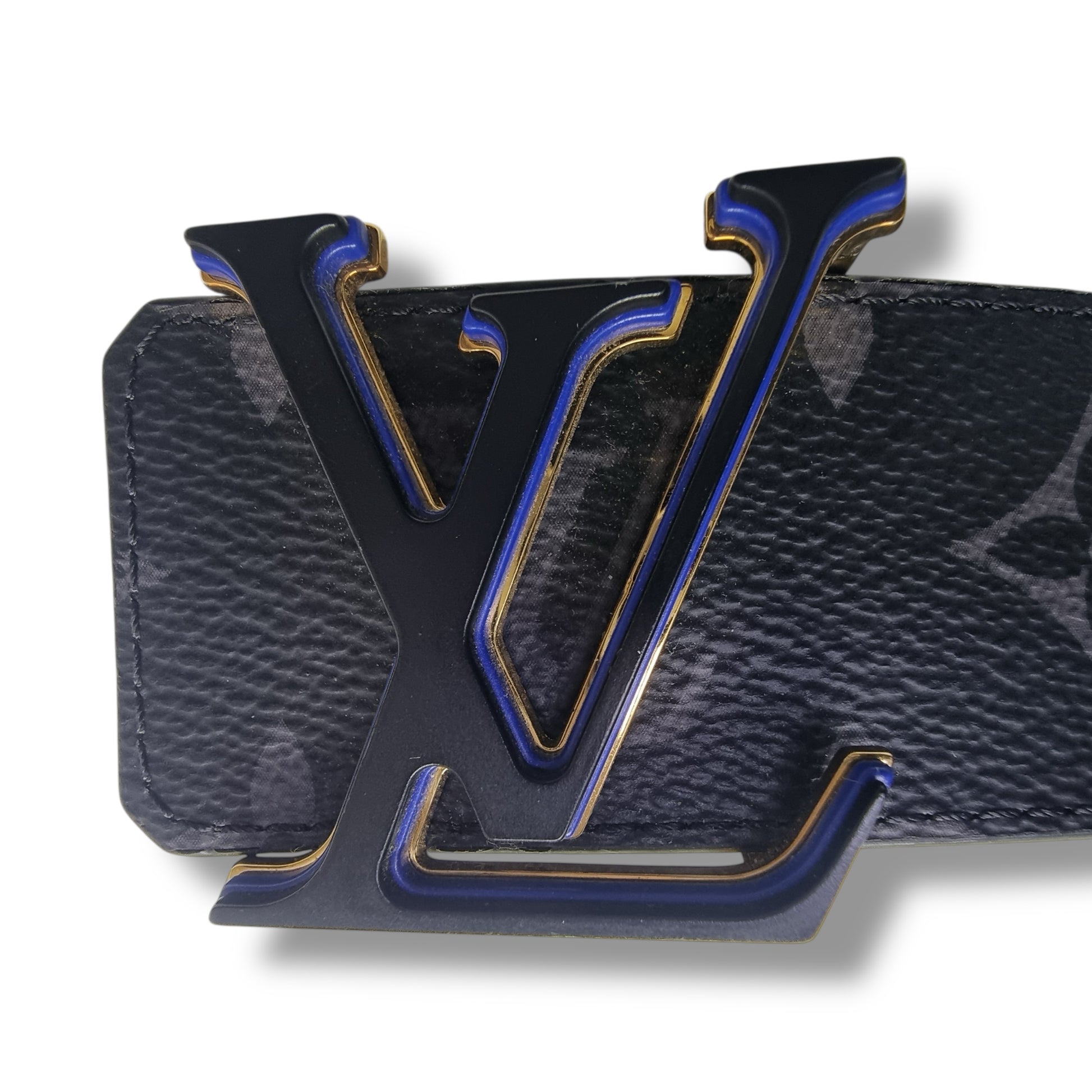Exterior : The canvas is very clean and nice. Hardware has some scratches and overall is in excellent condition. Is crafted with a striking LV Optic buckle, engineered from three layers of metal in alternating black, electric blue and gold. Can be styled two ways, with a canvas Eclipse side or smooth black leather.