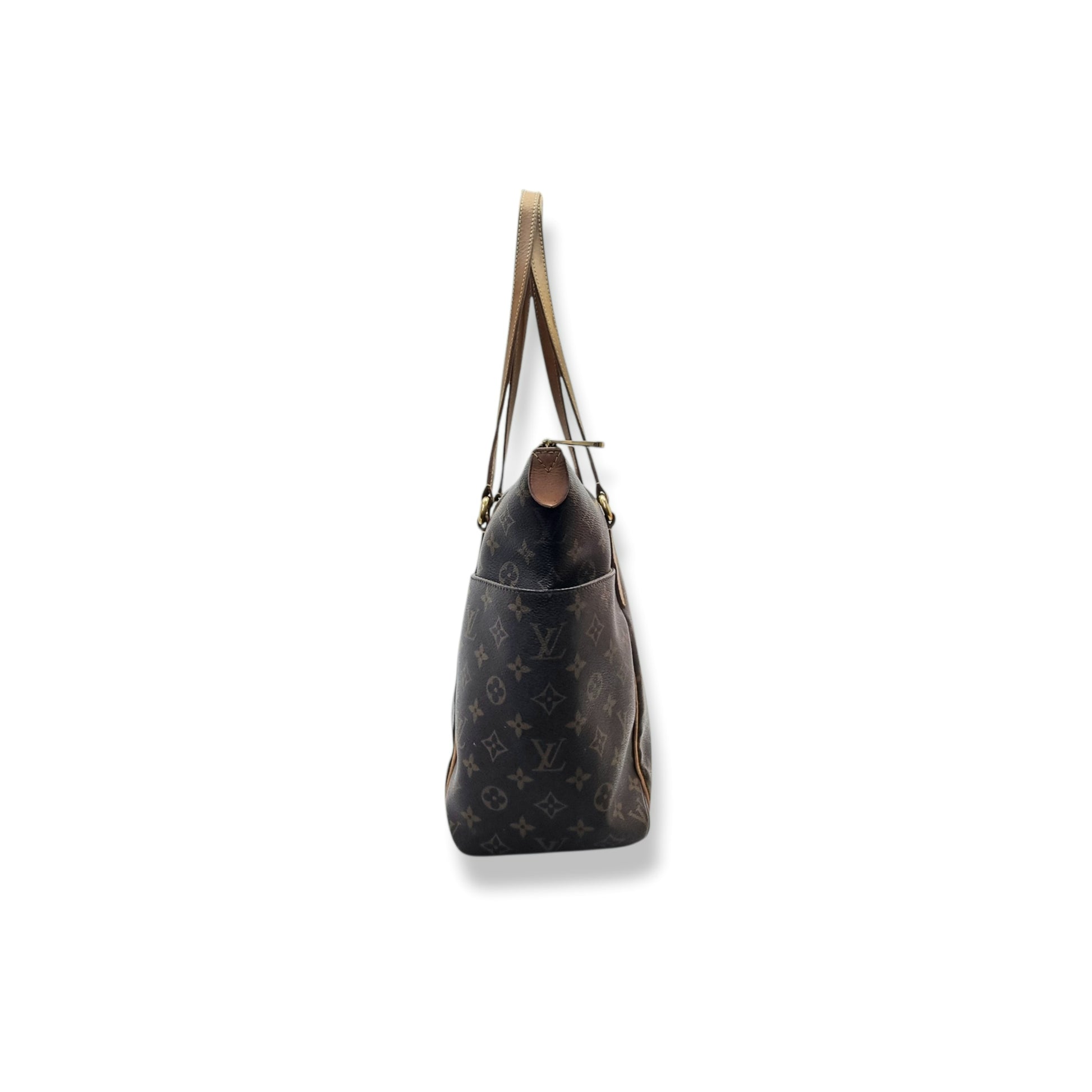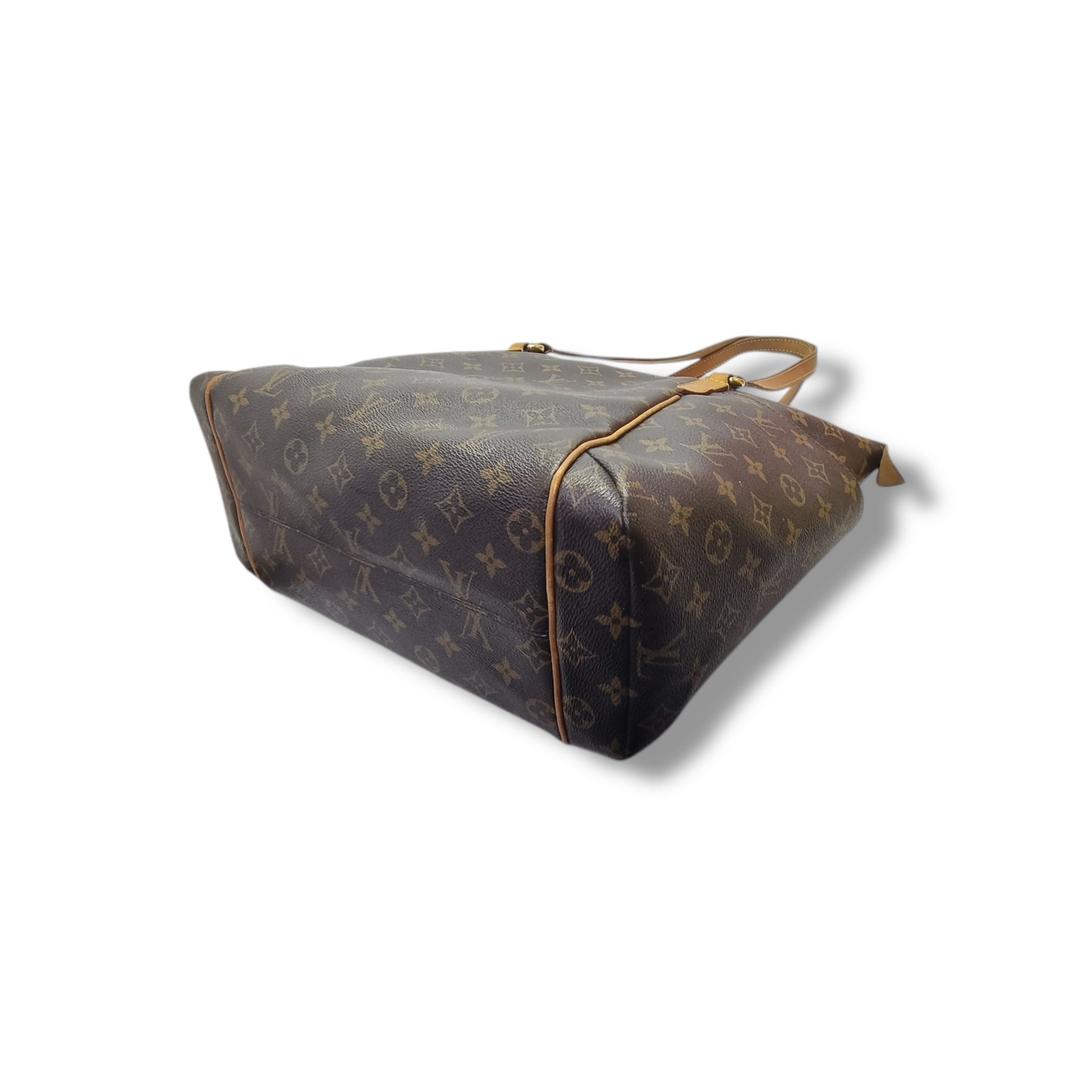 Exterior : The canvas is clean but leather has developed a dark patina. The leather trim has scuffings. The handles has darkened, minor scuffs, softened and few marks. Overall in good condition with 2 flat side pockets, double leather handles and top zip closure.