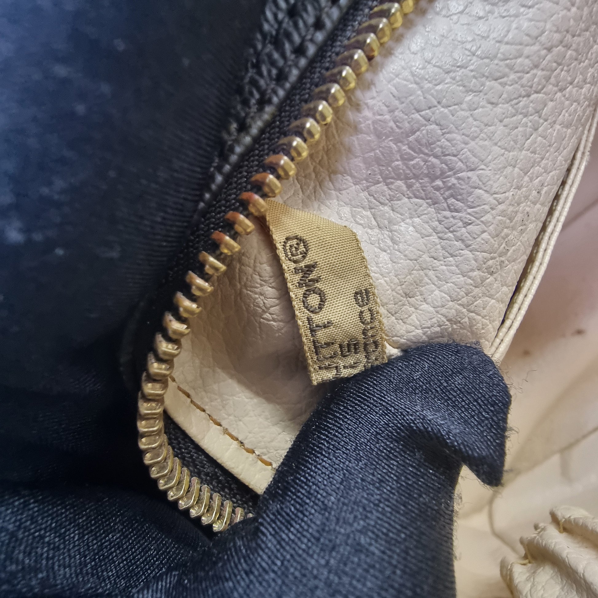 Exterior : The canvas is free of any rips or cracks but have minor rubbing at the corners. Zipper hardware has is slightly faded.. Overall in very good condition withzip closure.