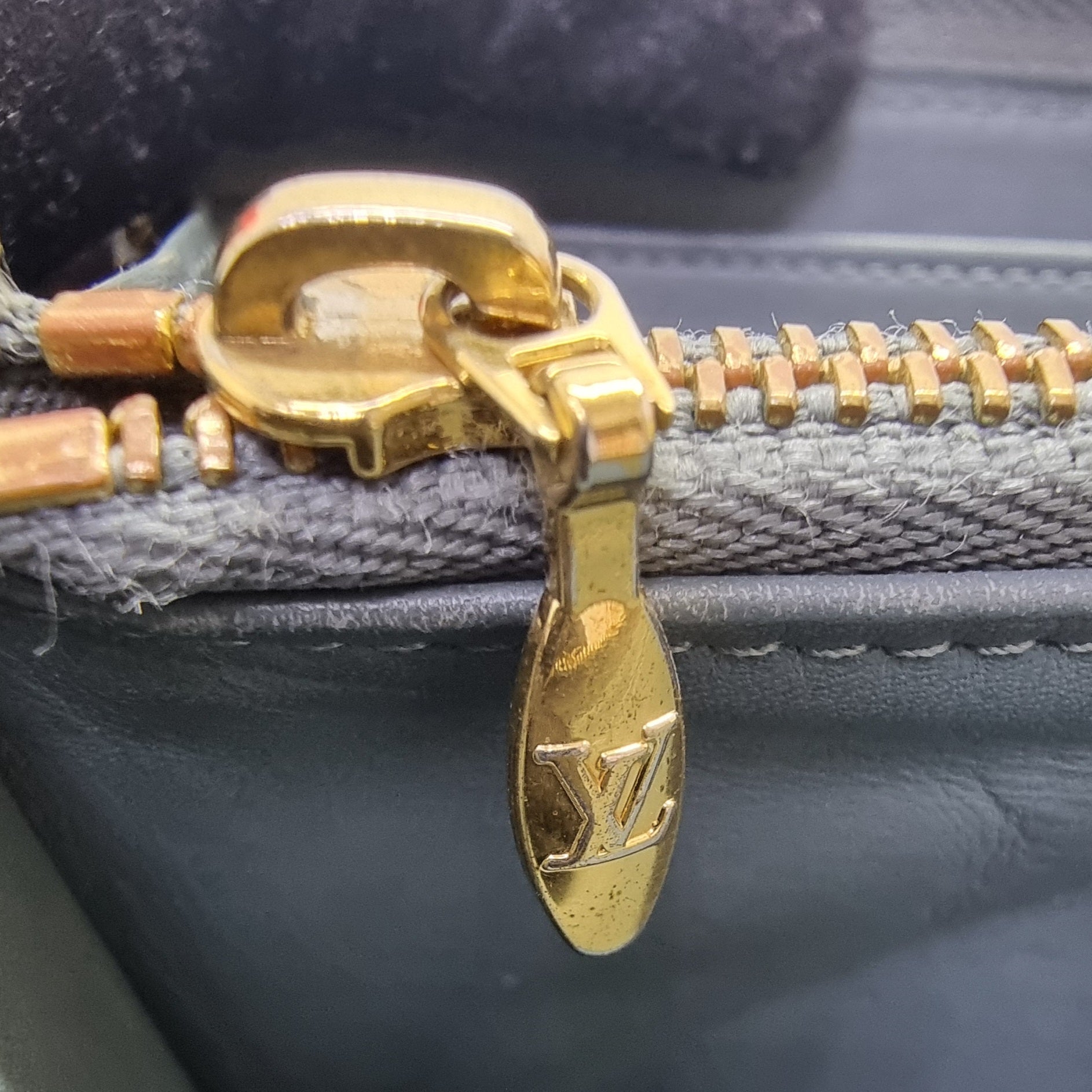 Exterior : The leather have faded and minor marks. The 4 corners scruffs, the zipper puller has tarnished and dirty as well. Overall in good condition with zip around closure.