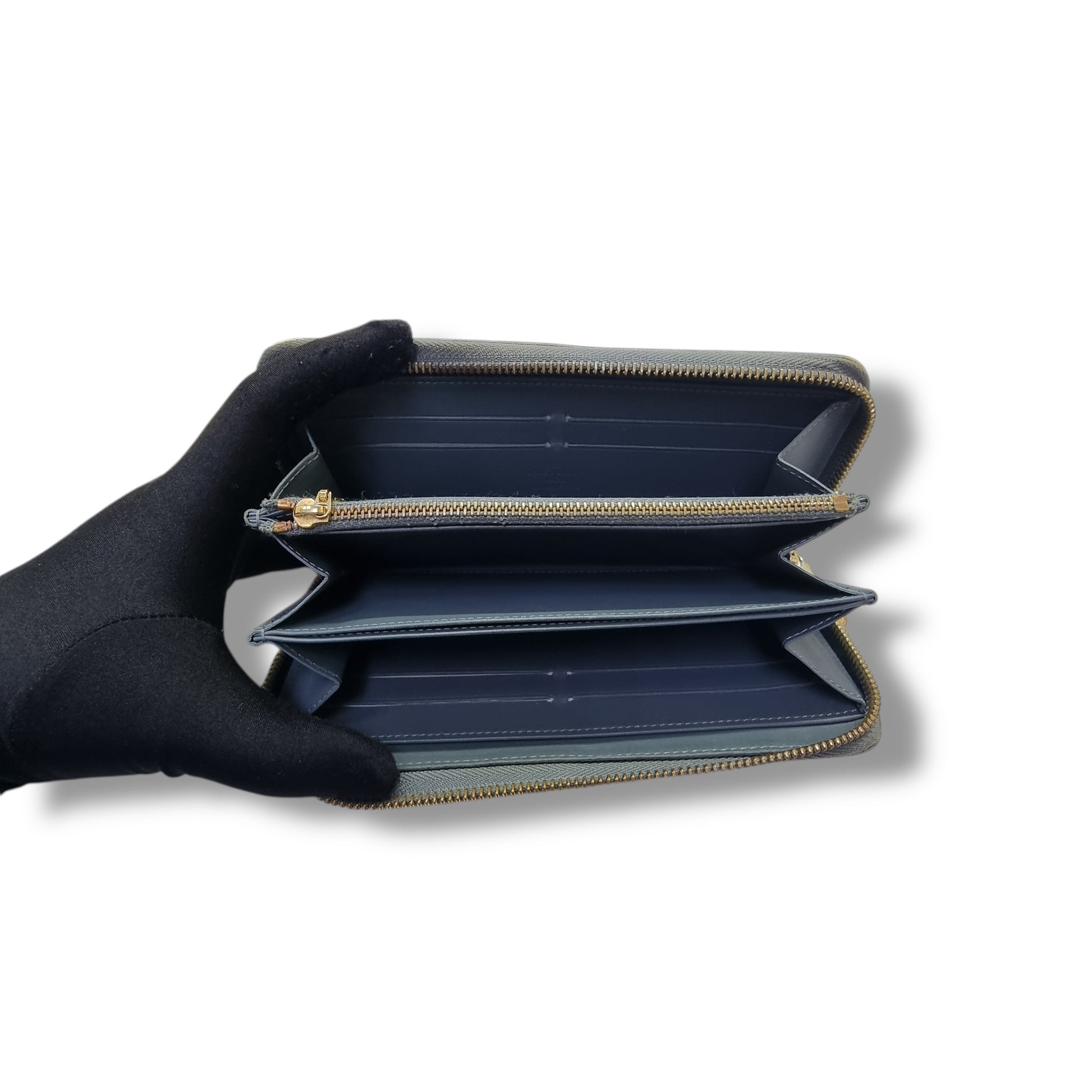 Interior : Have some mark and scratches with 3 gusseted compartments, 1 bill pocket, 2 flat pockets, 1 zipped pocket and 8 card slots.