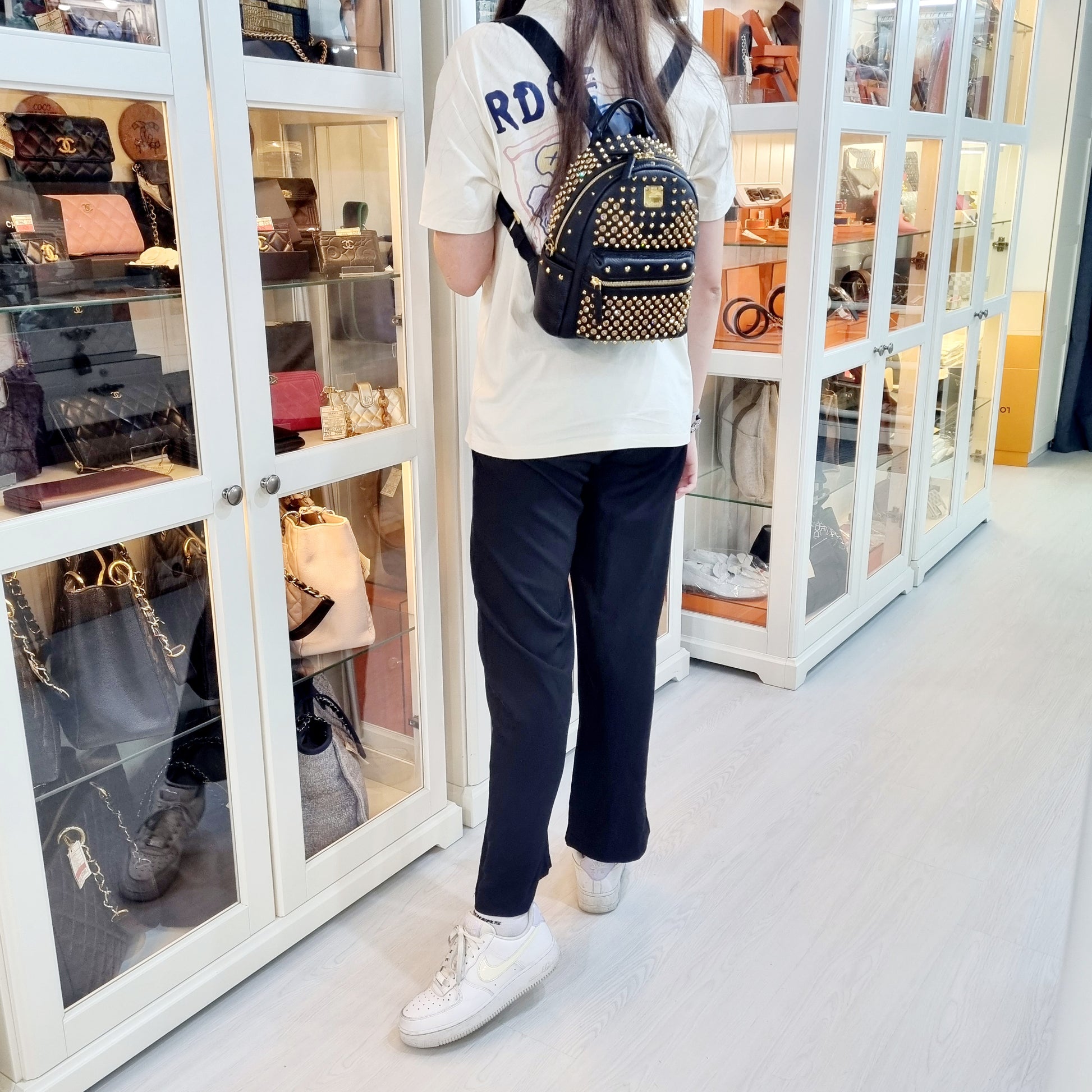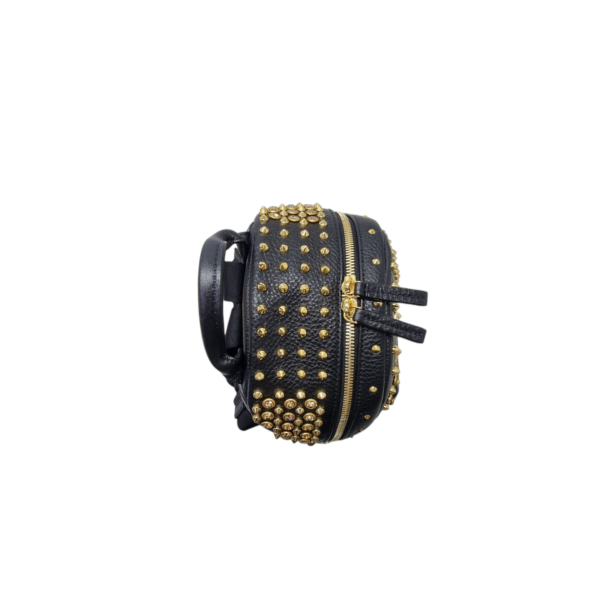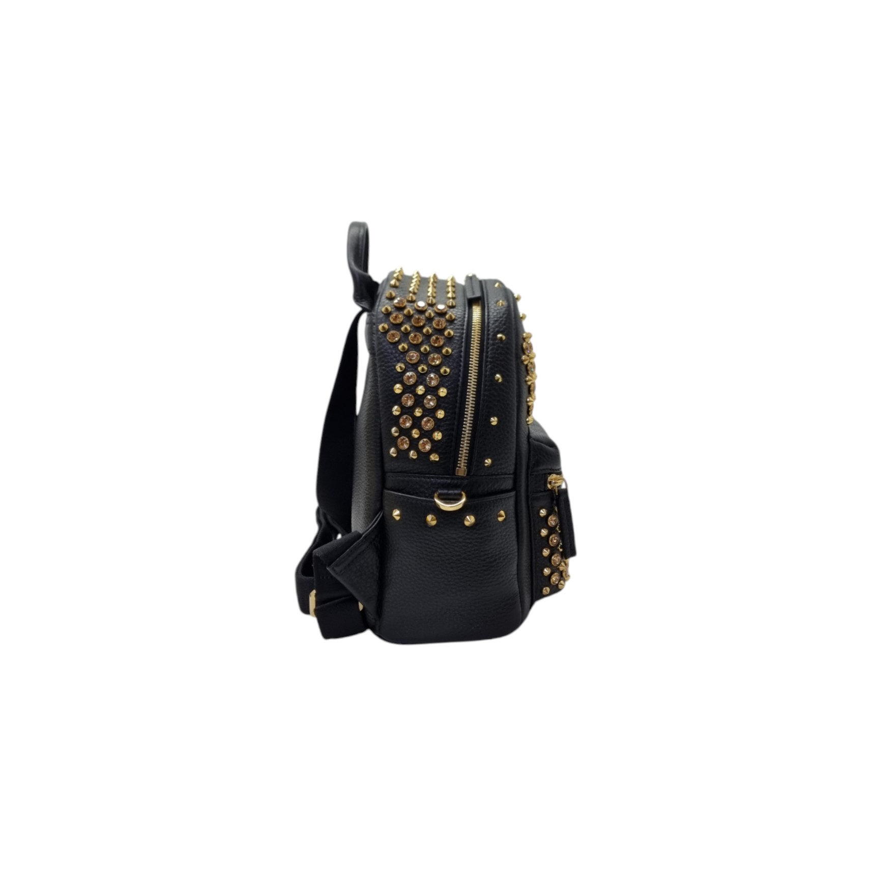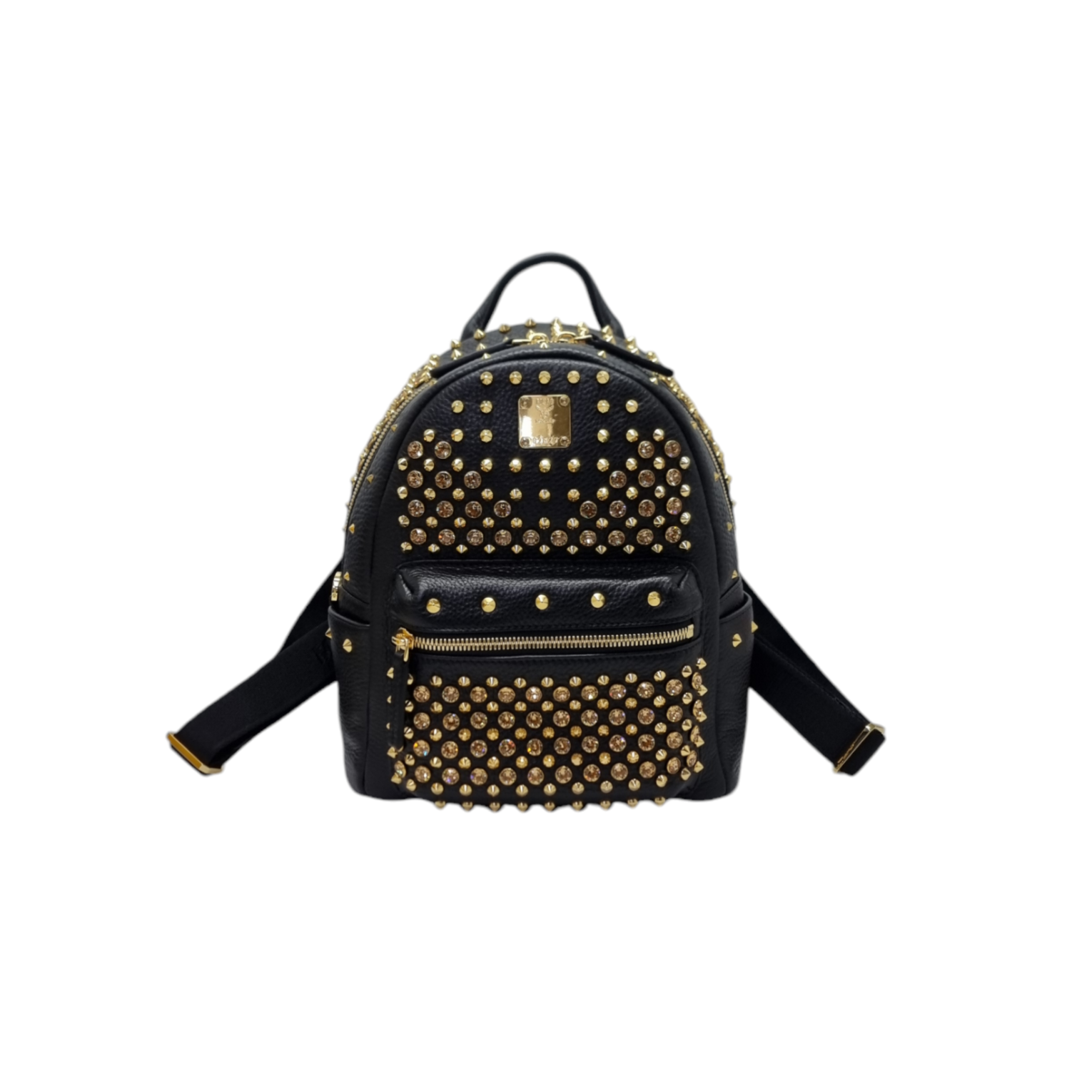 MCM Backpack Swarovski Crystal Studded Leather Ghw (Black)