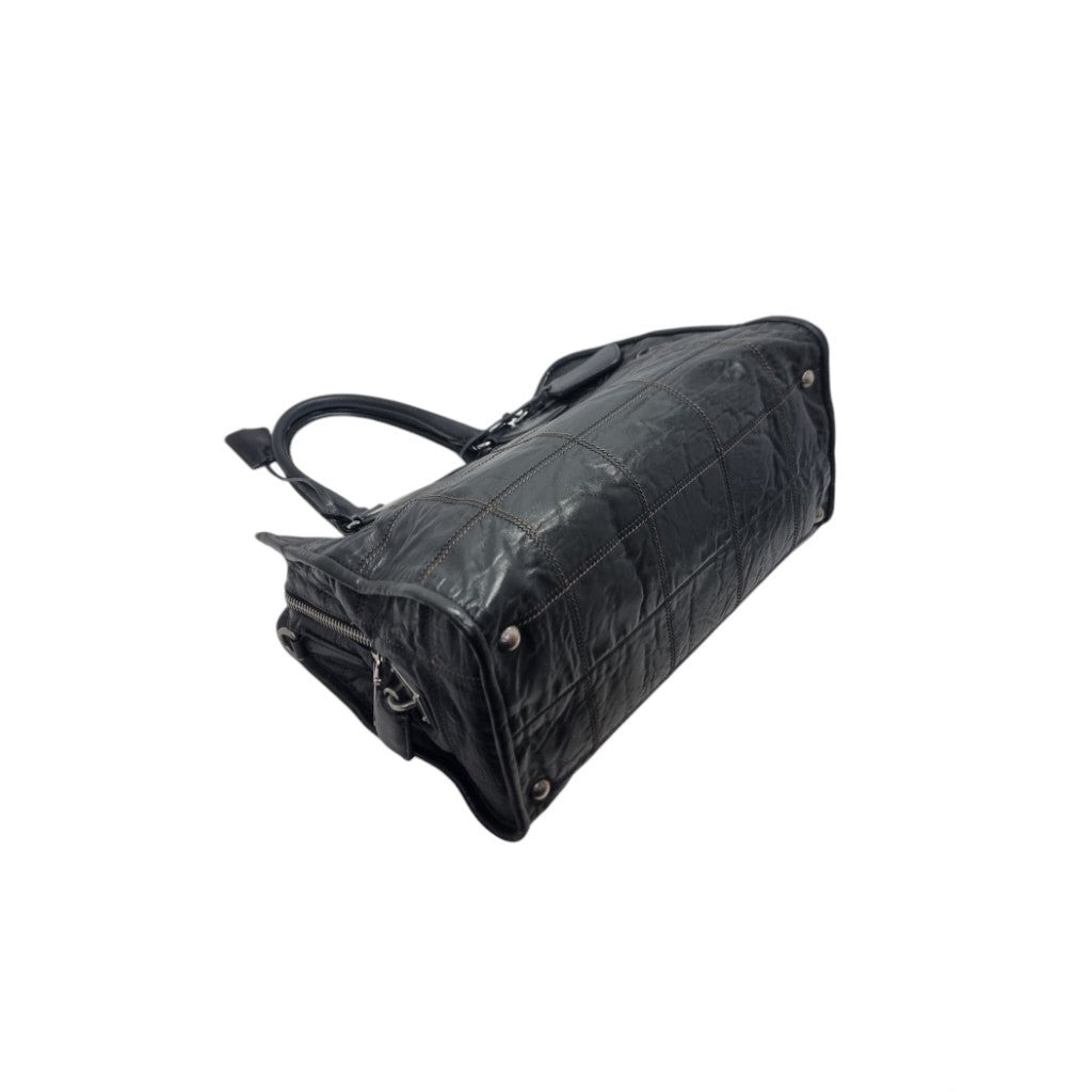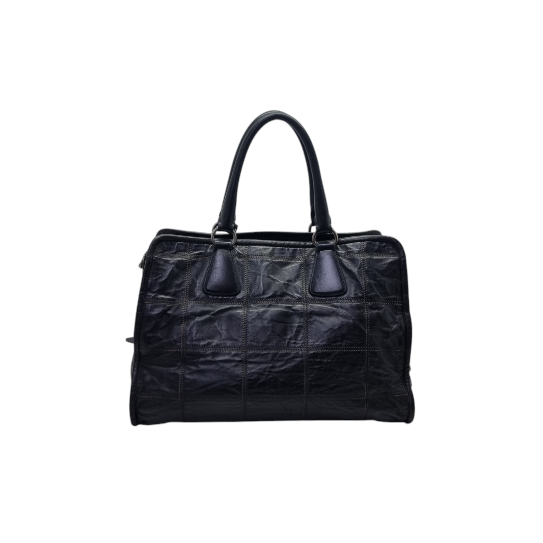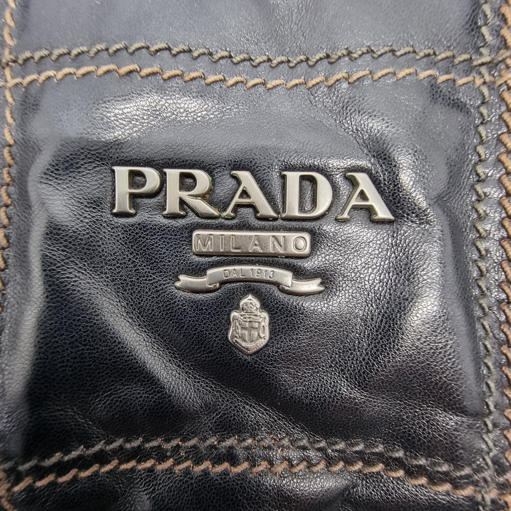Prada BR3107 Vintage Bauletto Double Stitch Leather Tote Bag Shw (Black)
