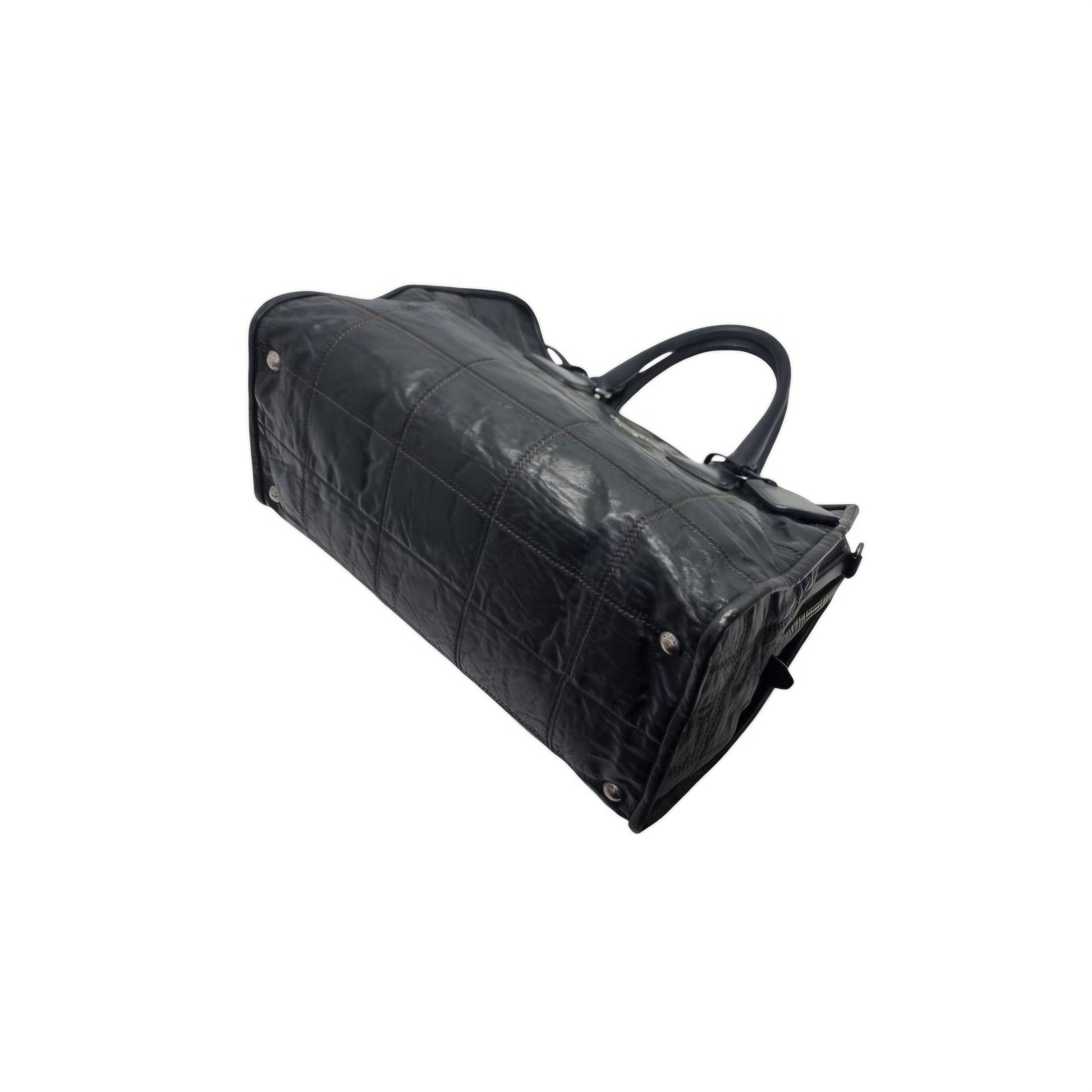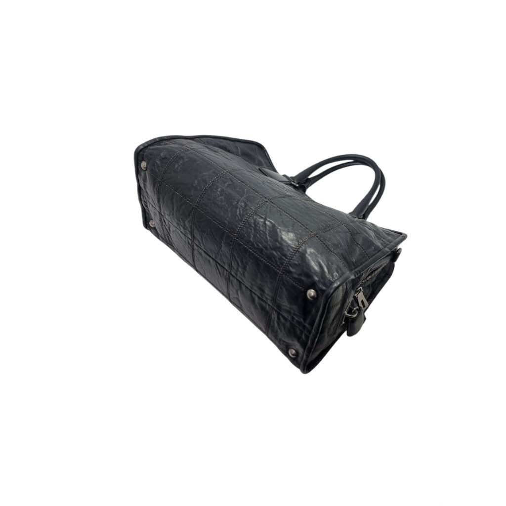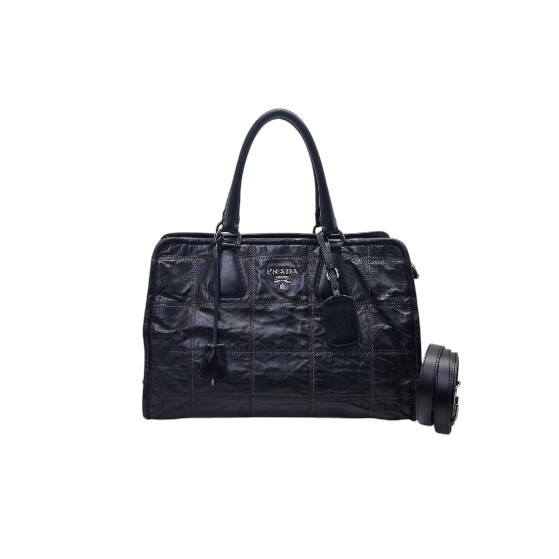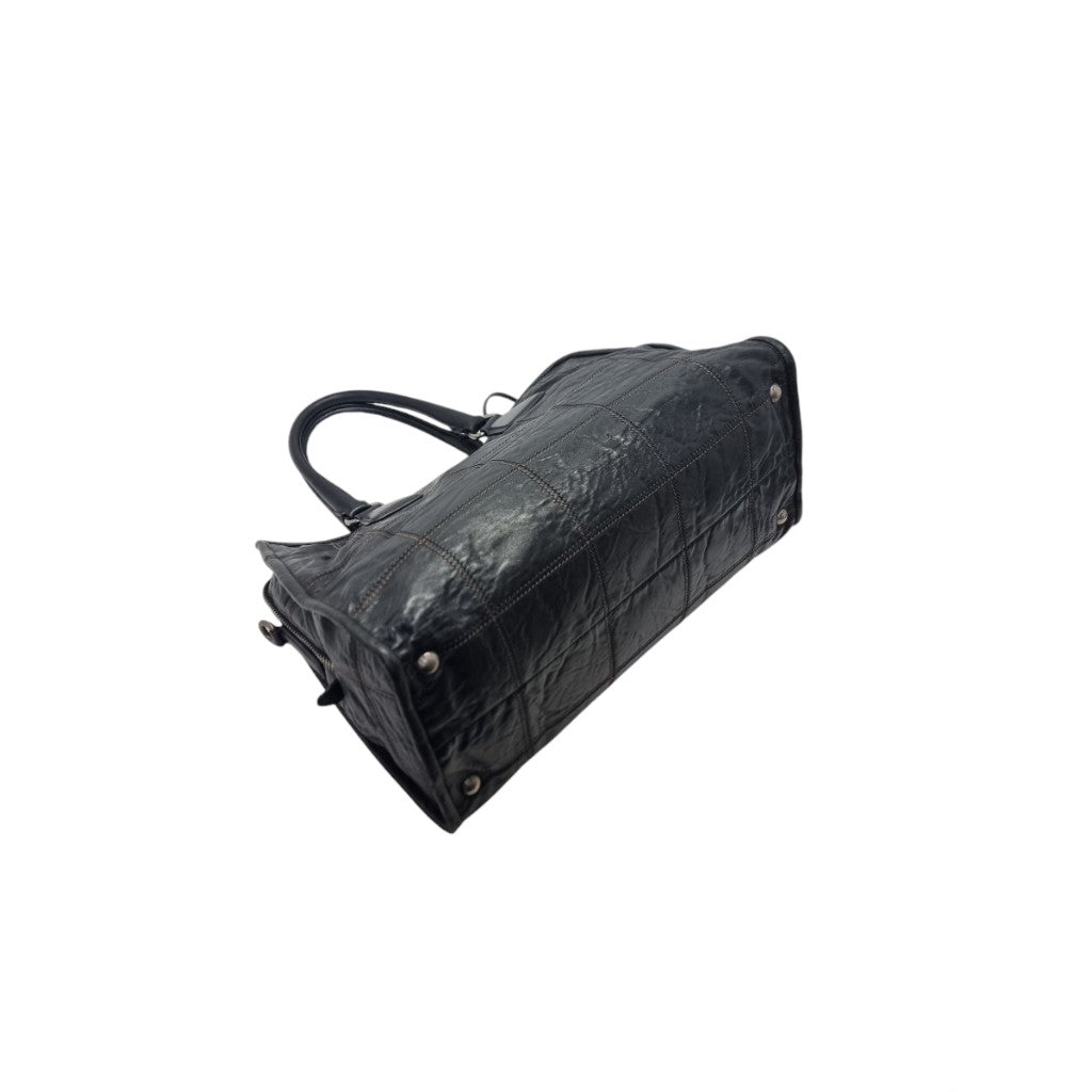 Prada BR3107 Vintage Bauletto Double Stitch Leather Tote Bag Shw (Black)