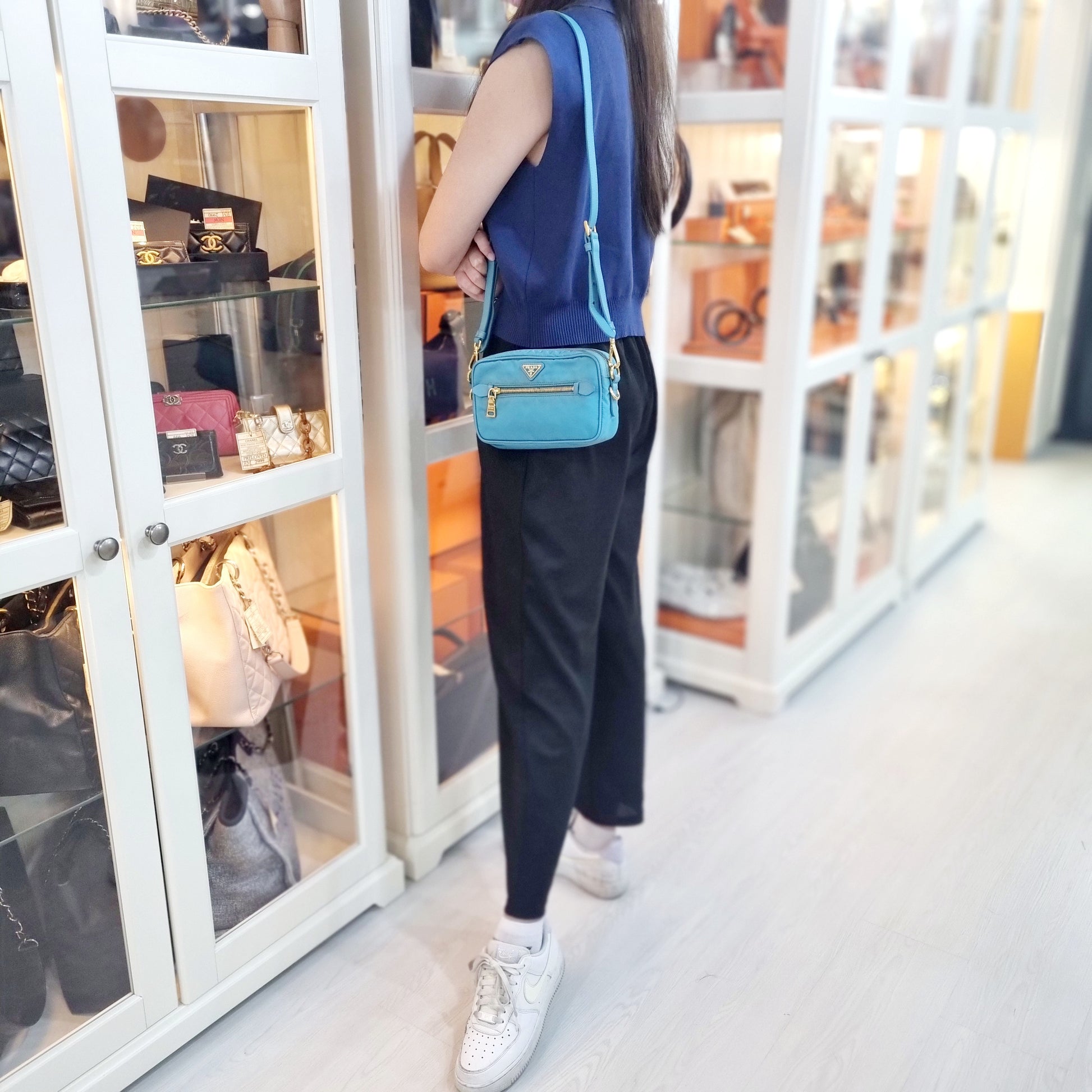 Prada BT0773 Nylon Sling Bag Ghw (Turquoise)