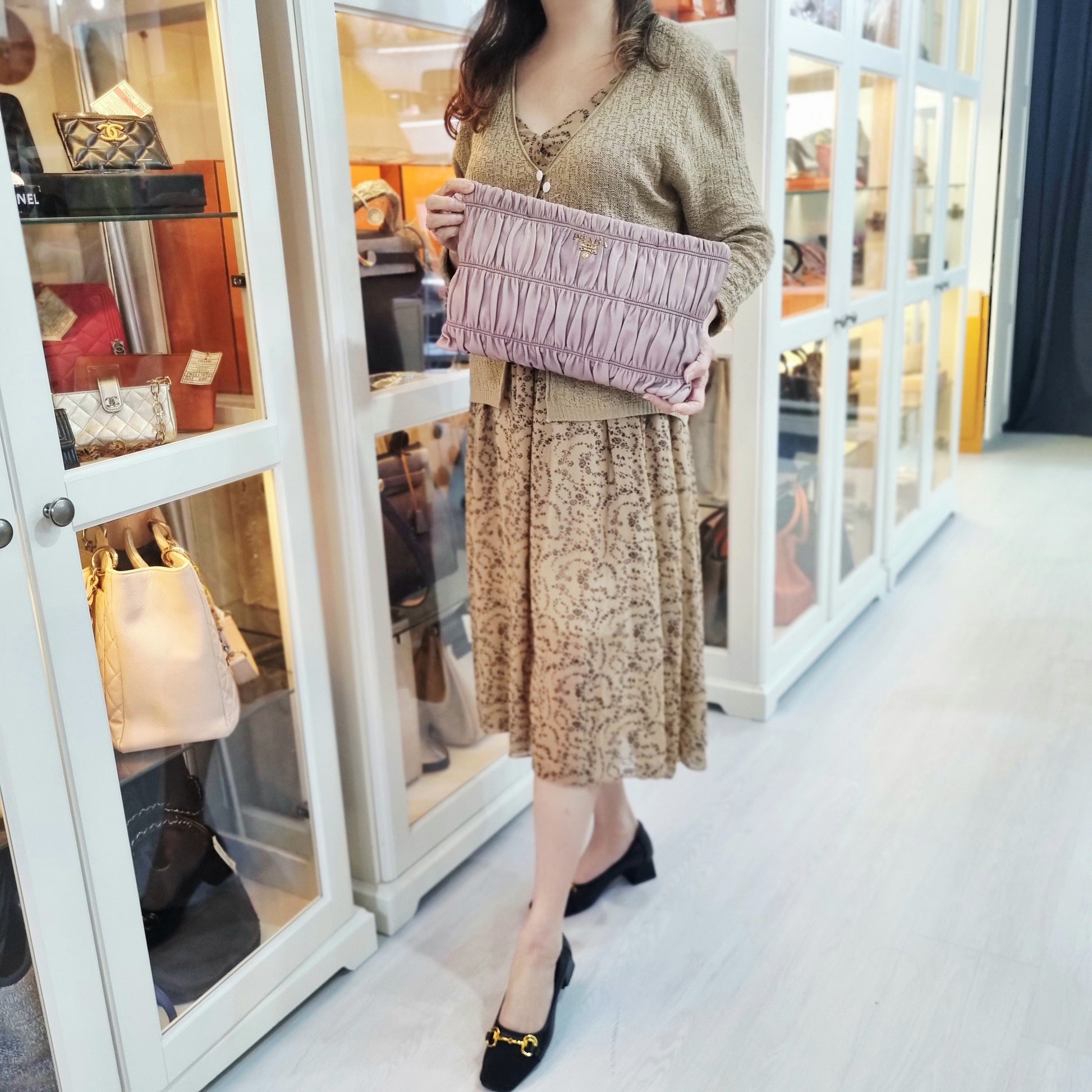 Prada Nappa Gaufre Leather Clutch Ghw (Pink)
